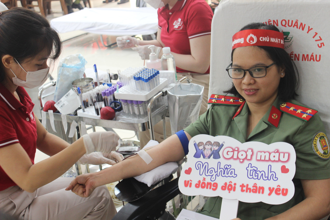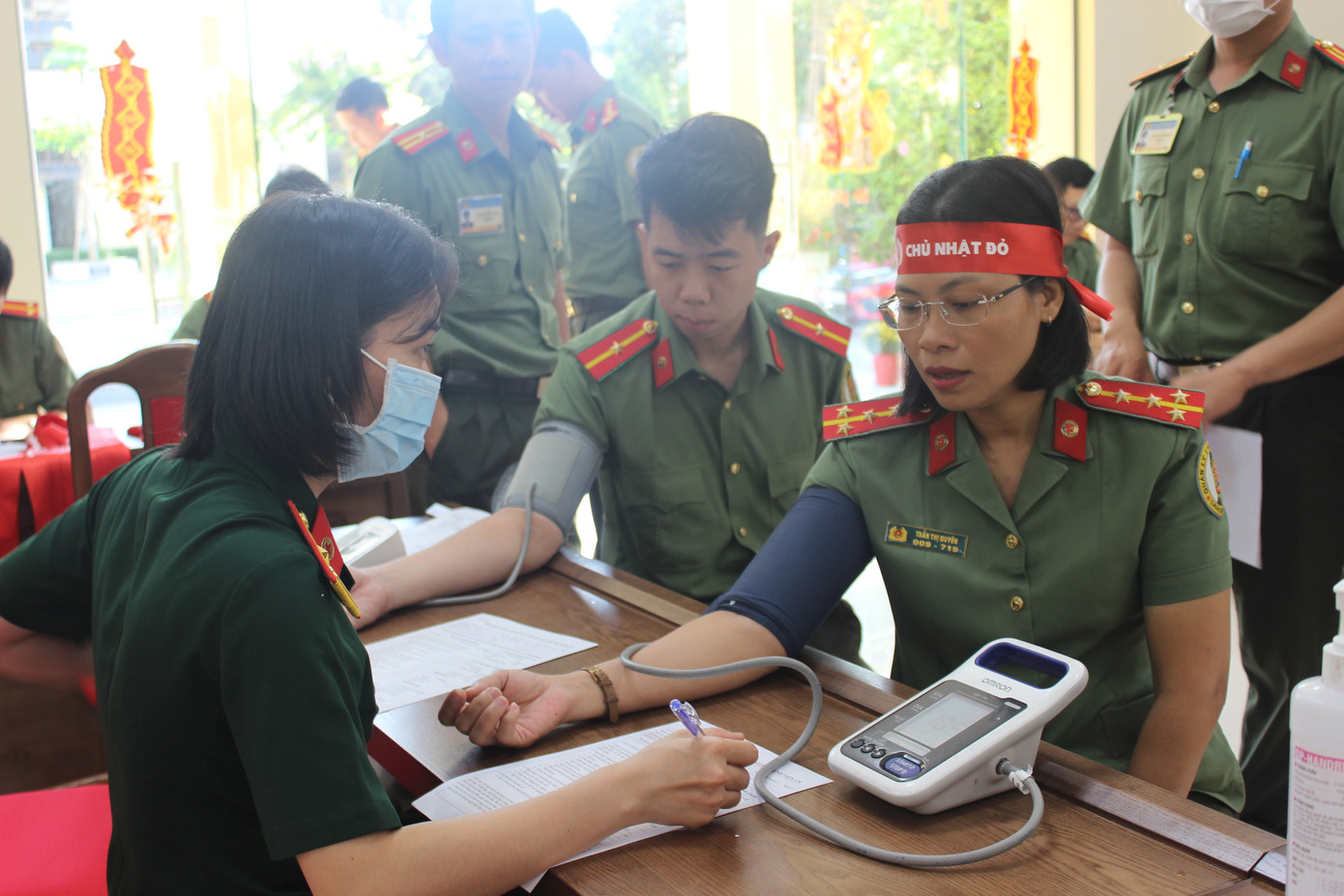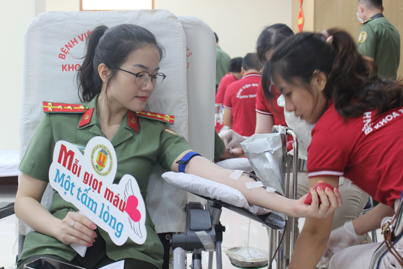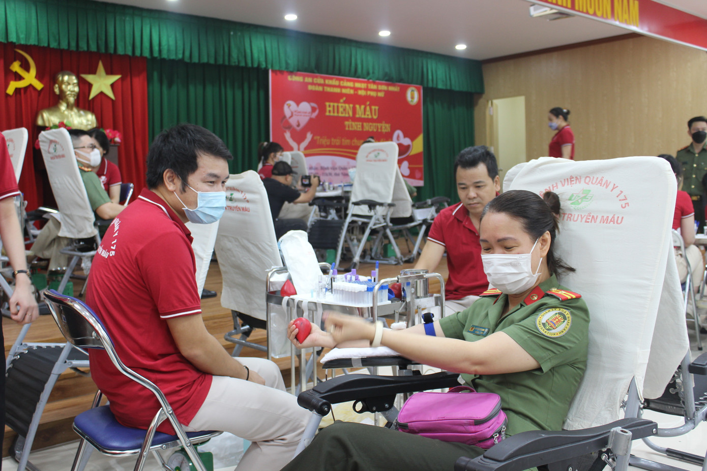 | Không chỉ đoàn viên, thanh niên nhiệt tình hưởng ứng mà còn có nhiều nữ chiến sĩ công an cũng hưởng ứng hoạt động, tham gia hiến máu. |