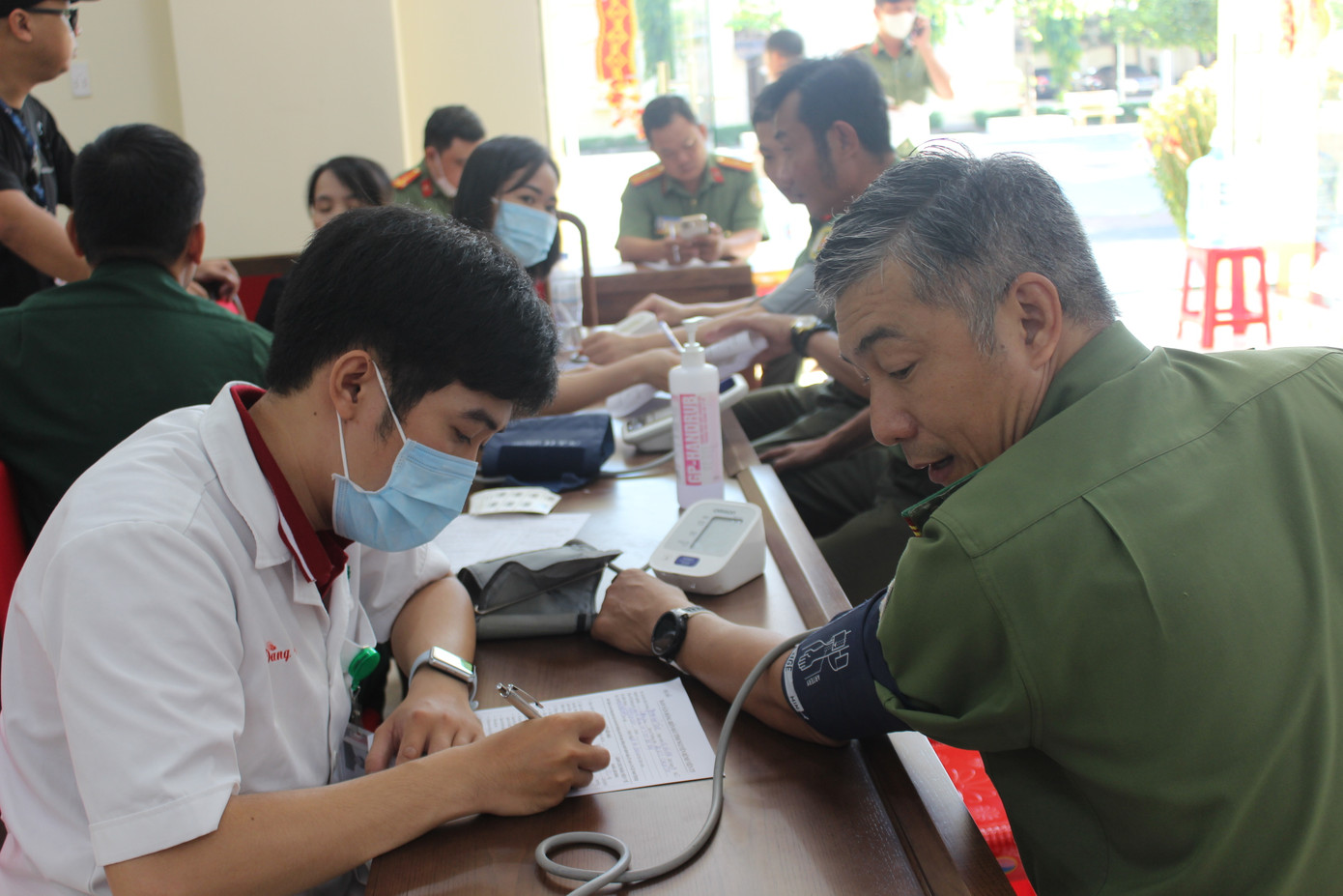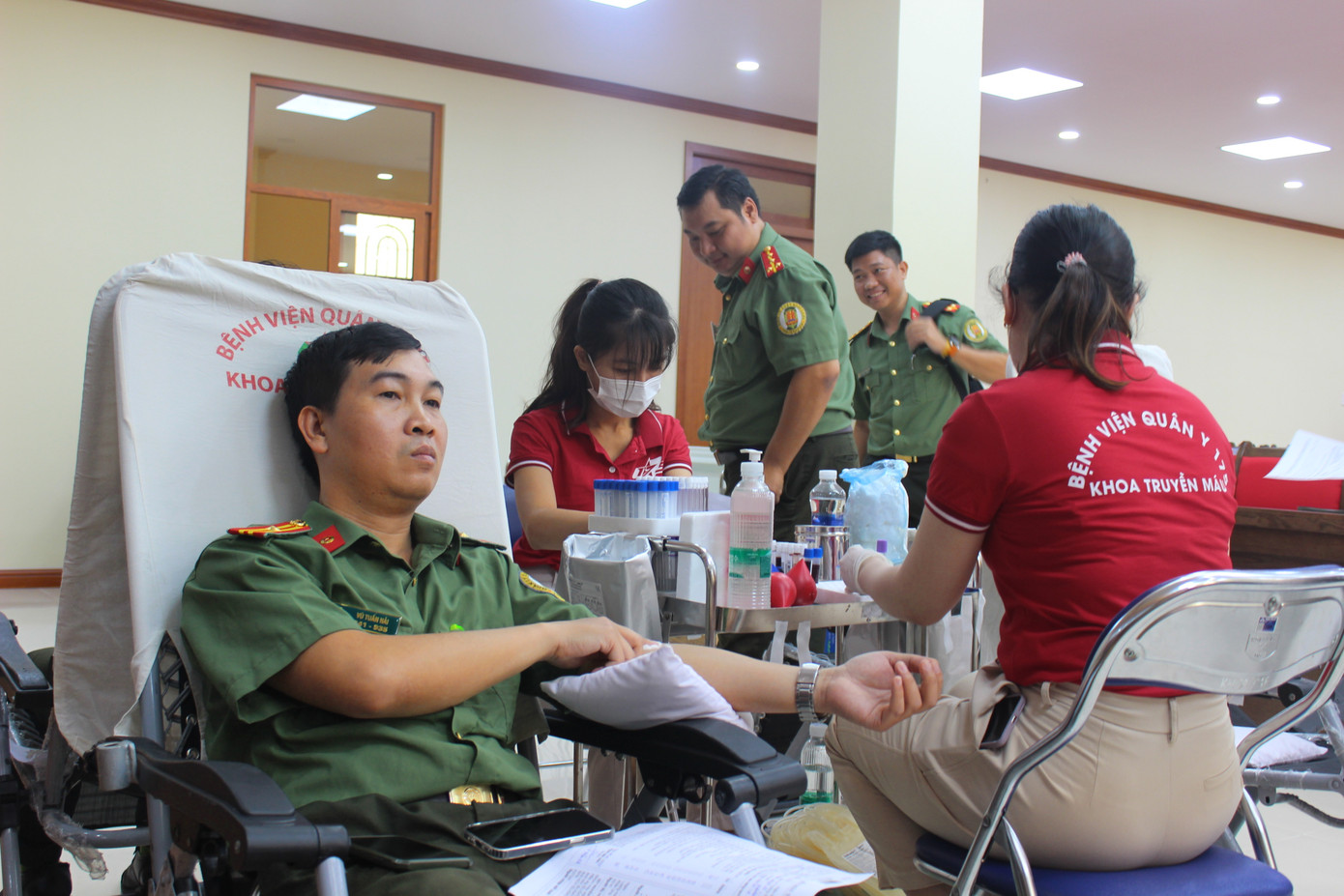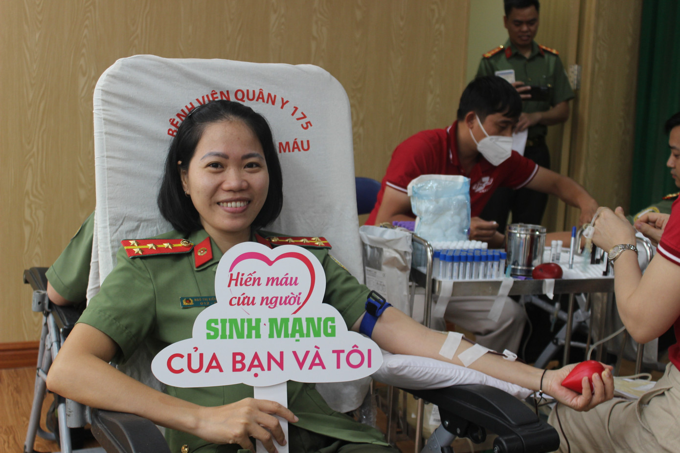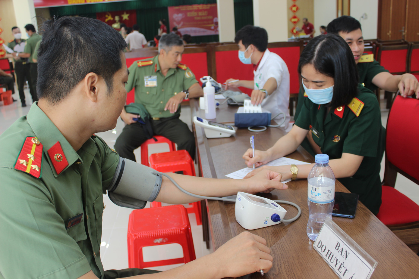 | Không chỉ đoàn viên, thanh niên nhiệt tình hưởng ứng mà còn có nhiều nữ chiến sĩ công an cũng hưởng ứng hoạt động, tham gia hiến máu. |