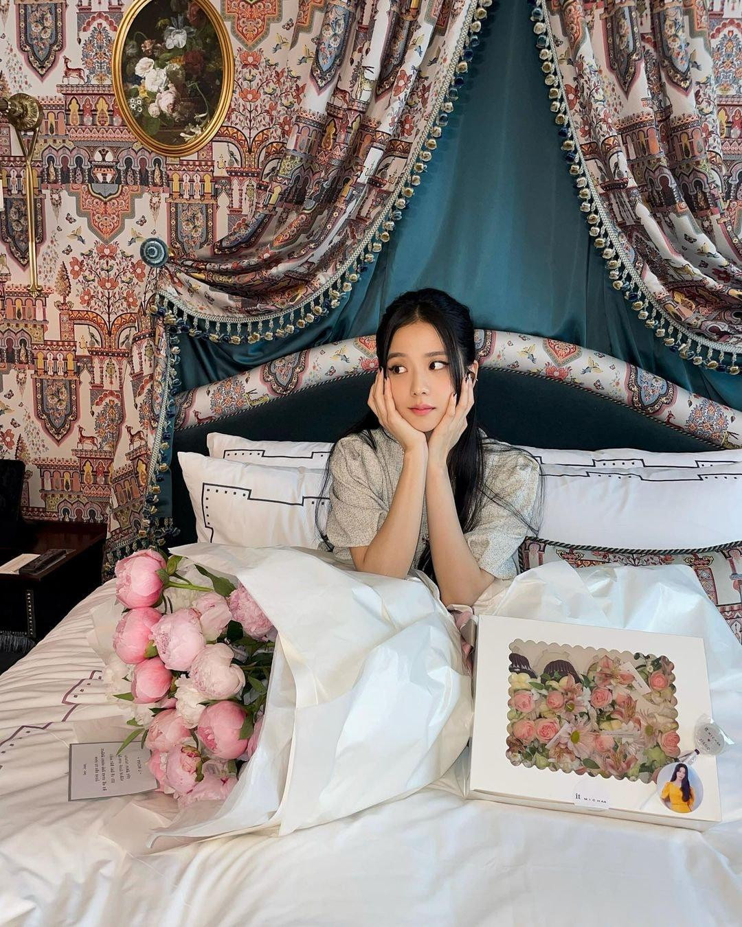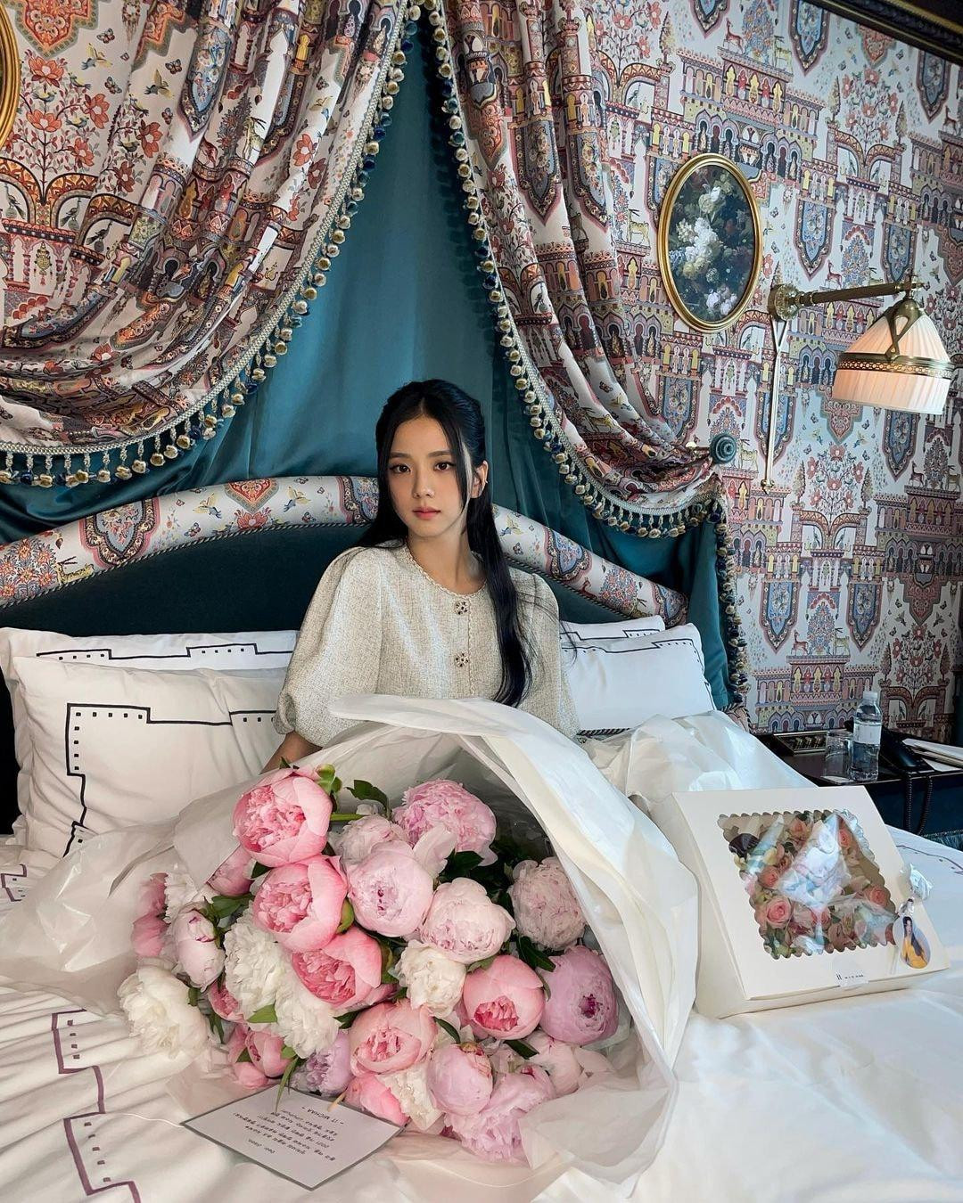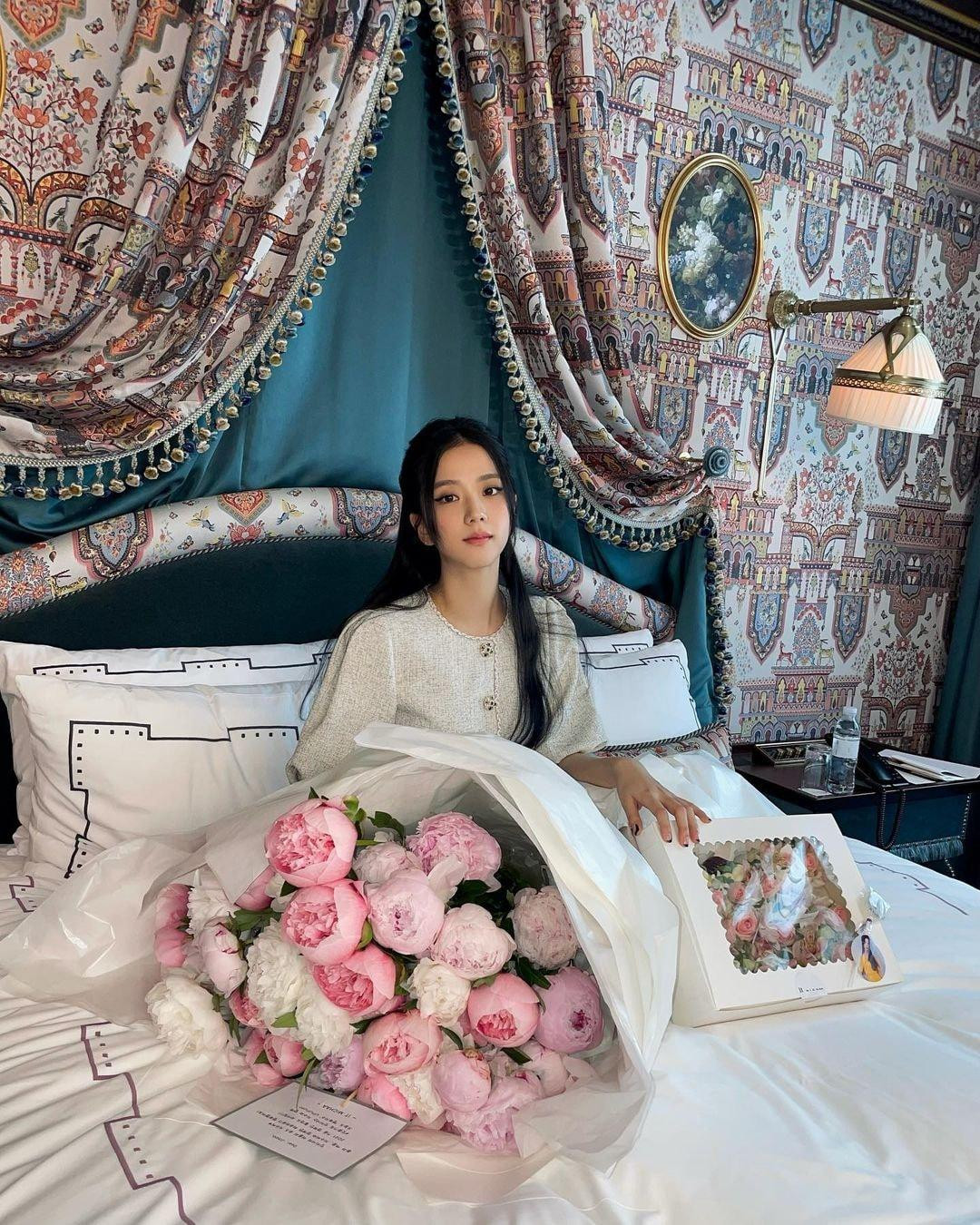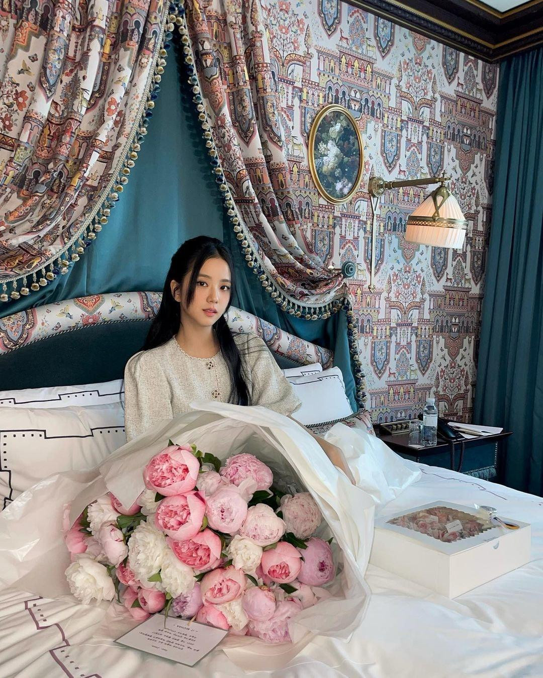 HHTO - Jisoo (BLACKPINK) mới tung lên trang cá nhân loạt ảnh cô chụp cùng bó hoa mẫu đơn “siêu to khổng lồ” tuyệt đẹp. Cô chụp ảnh trong căn phòng ngủ bài trí sang trọng, khiến netizen không khỏi cảm thán: “Bó hoa đẹp thật đấy nhưng vẫn không đẹp bằng “công chúa" Jisoo!”.