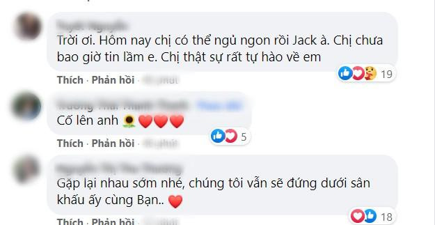Bài đăng của ca sĩ gốc Bến Tre nhanh chóng nhận được sự quan tâm của cộng đồng mạng. Phần đông khán giả dưới bài viết ủng hộ cách nhận lỗi và chia sẻ sự việc rõ ràng của Jack.