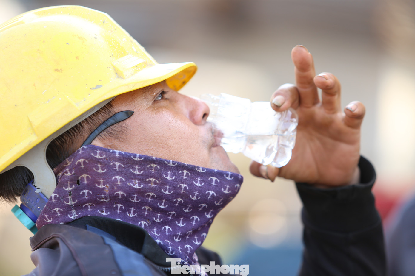 | Công nhân bịt kín mặt tránh nắng. |