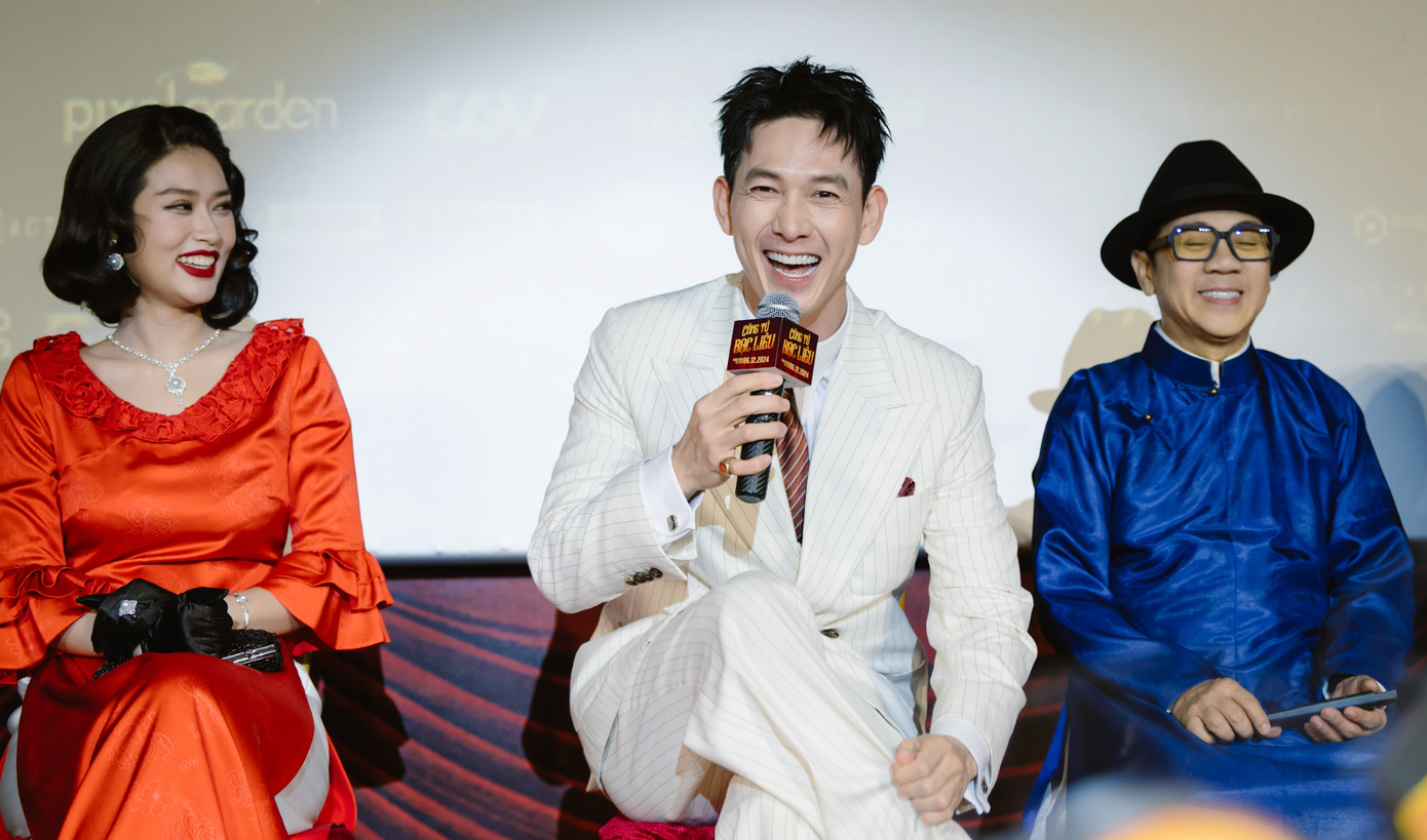 | Dàn diễn viên Công tử Bạc Liêu tại buổi họp báo ra mắt phim. |