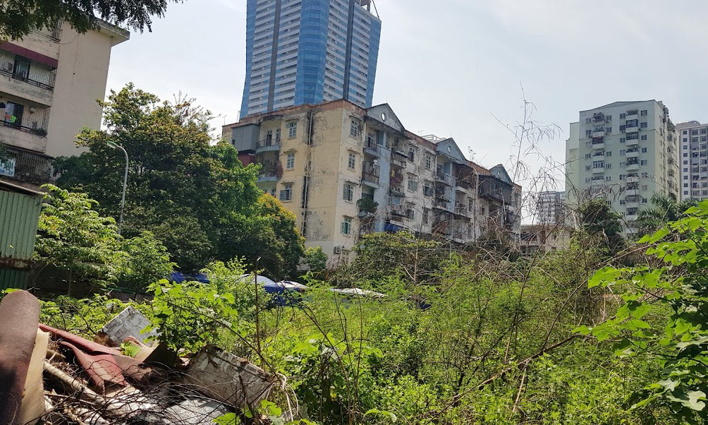 Khu đất ký hiệu C2 trên đường Nguyễn Thị Thập được TP Hà Nội giao cho Công ty CP Đầu tư và phát triển nhà số 6 Hà Nội thực hiện dự án Y tế, nhà văn hóa và chỗ để xe phục vụ dân cư nhưng bỏ hoang gần 20 năm qua.