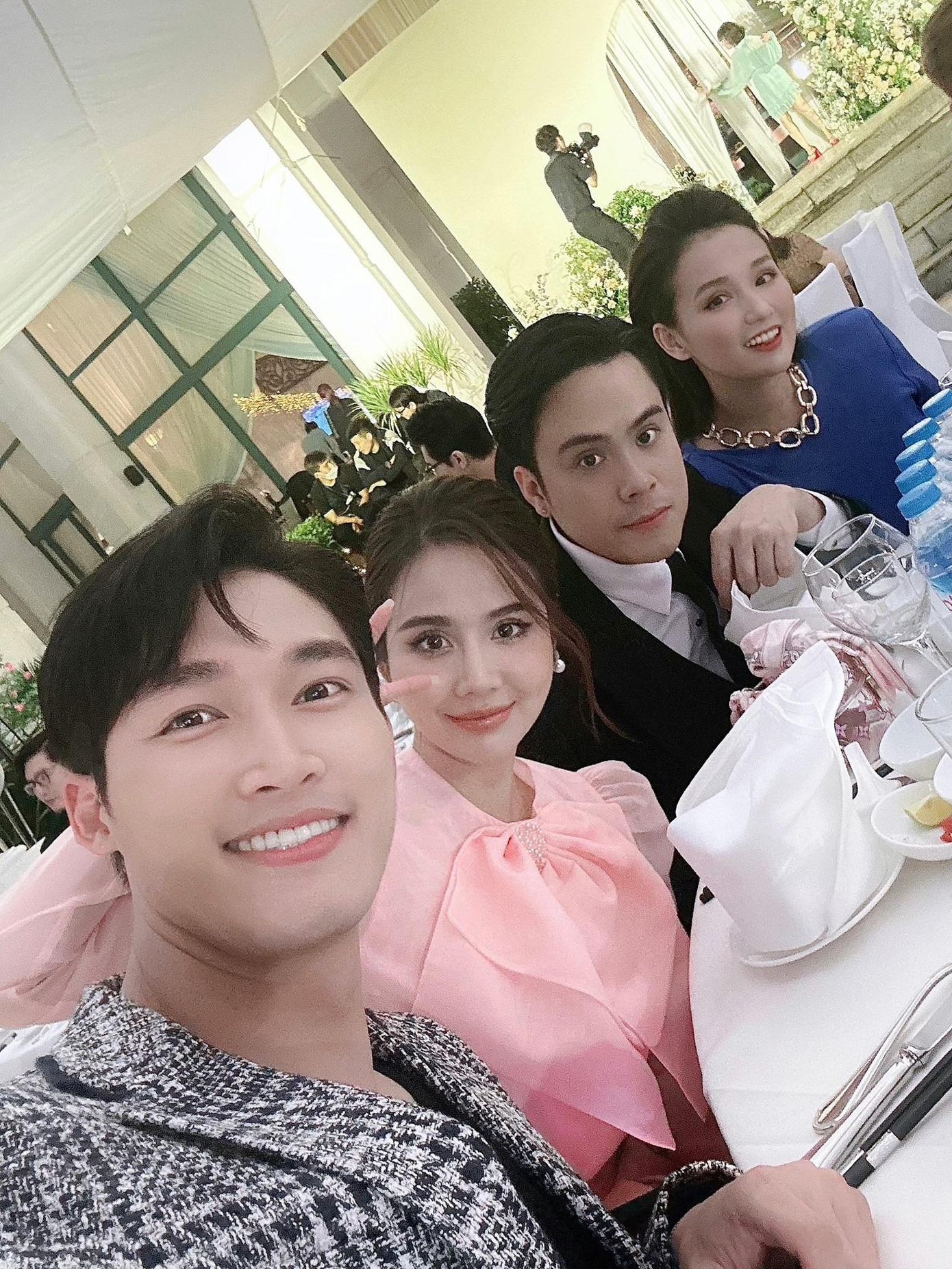 Khả Ngân còn ở lại đến cuối bữa tiệc, quậy tưng bừng cùng cô dâu chú rể, còn bị đẩy xuống bể bơi nhưng khán giả không thấy Thanh Sơn đâu cả. Rất may là cặp đôi vẫn còn kịp chụp chung một tấm ảnh nhưng như thế vẫn không đủ. Bởi người hâm mộ đều mong nhìn thấy Khả Ngân - Thanh Sơn tương tác với nhau nhiều hơn thế.