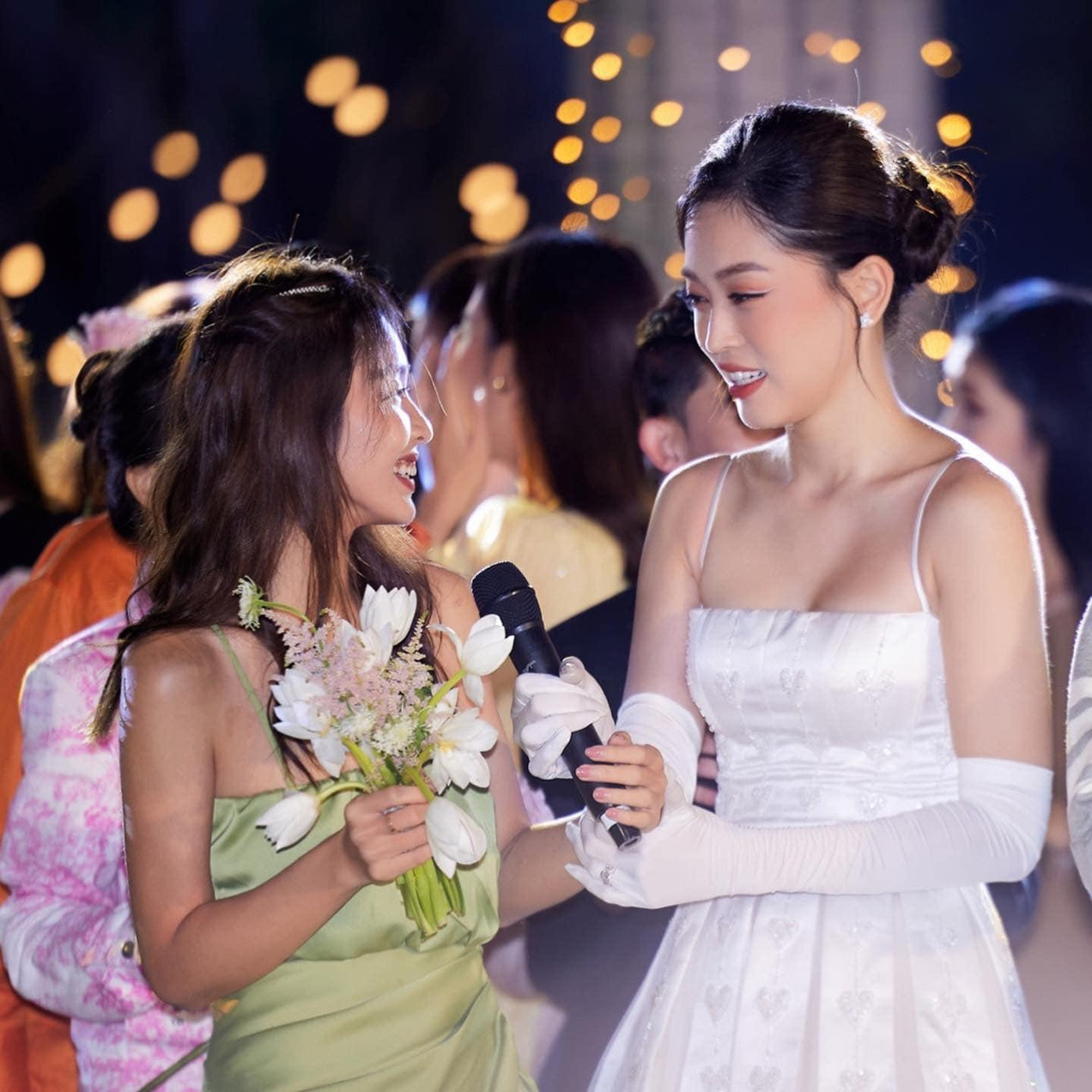 Hôn lễ của Á hậu Phương Nga và diễn viên Bình An có hai thế lực khách mời cực "khủng": Một bên là các Hoa - Á hậu đình đám, bên kia là các ngôi sao bước ra từ “vũ trụ phim VTV”. Trong số đó, có hai cặp đôi đang được khán giả hy vọng “phim giả tình thật” là Khả Ngân - Thanh Sơn và Đình Tú - Huyền Lizzie.