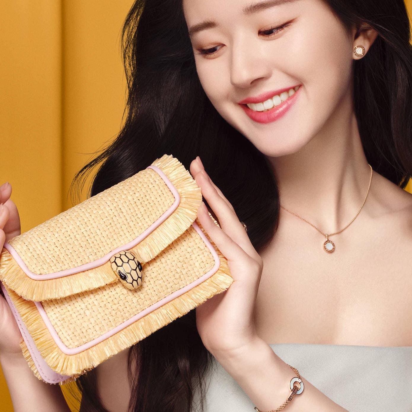 Mới đây, Triệu Lộ Tư cũng được Bvlgari mời làm đại sứ hình tượng khu vực Trung Quốc. Trong loạt hình quảng bá mẫu túi mới, Triệu Lộ Tư nhìn vô cùng lí lắc đáng yêu như chính hình tượng của cô bao lâu nay.