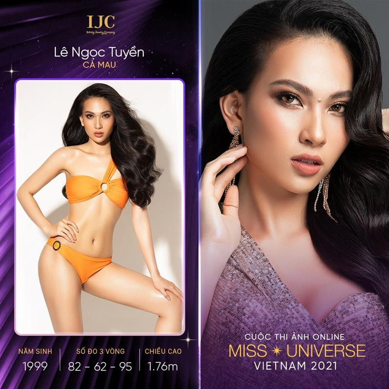 Lê Ngọc Tuyền đến từ Cà Mau cũng từng tham gia Hoa hậu Hoàn vũ Việt Nam 2019 và dừng chân ở Top 45. Lê Ngọc Tuyền xác định bản thân cần phải thay đổi những gì, từ đó cô vạch ra kế hoạch tập luyện chờ ngày quay trở lại Hoa hậu Hoàn vũ Việt Nam 2021. Lê Ngọc Tuyền cao 1m76, số đo hình thể 82-62-95.