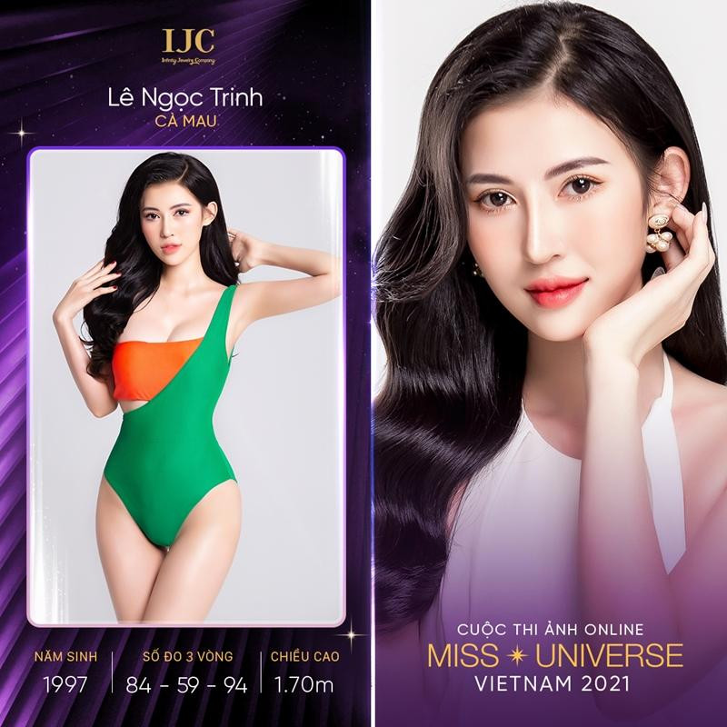 Đang là người mẫu tự do, thí sinh Lê Ngọc Trinh mong muốn chinh phục những thử thách tại cuộc thi ảnh online Hoa hậu Hoàn vũ Việt Nam 2021. Sinh ra tại Cà Mau nhưng hiện Lê Ngọc Trinh đang làm việc tại TPHCM, Lê Ngọc Trinh. Cô cao 1m70, chỉ số hình thể: 84-59-94.