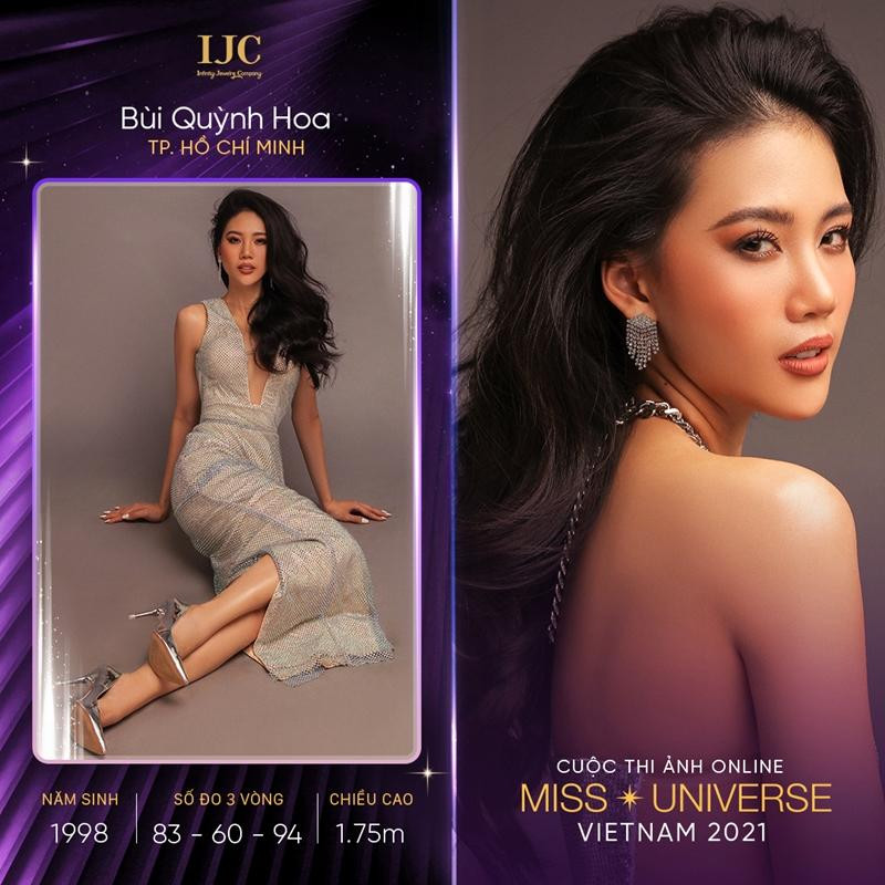 Bùi Quỳnh Hoa đến từ TP.HCM, đạt giải Vàng Siêu mẫu Việt Nam 2018, cô cũng đã từng tham gia Hoa hậu Hoàn vũ Việt Nam 2017 và dừng chân ở Top 45. Bùi Quỳnh Hoa cao 1m75, số đo 83-60-94.
