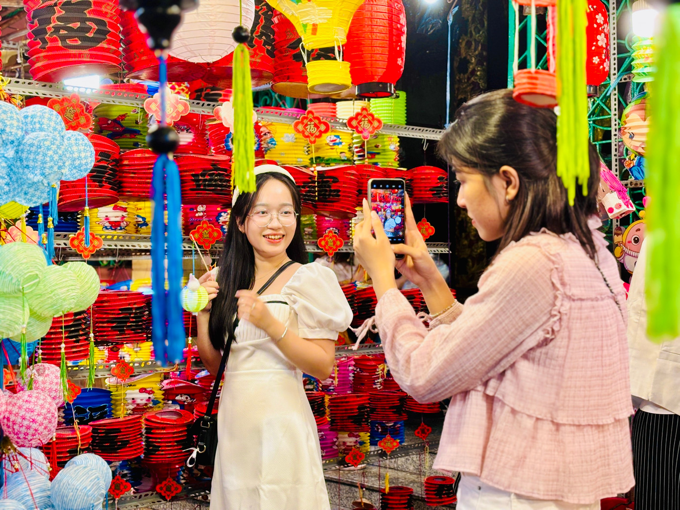 Nguyễn Ngọc Anh Thy (năm thứ ba, trường ĐH Nông Lâm TP. HCM) chia sẻ: “Năm nào cũng khoảng thời gian này, mình lại cùng bạn bè đến phố lồng đèn check-in, đi dạo, nhìn ngắm đèn lồng. Mình thích không chỉ là những gian hàng bắt mắt, sặc sỡ mà còn vì không khí nơi đây nữa. Khoảng thời gian này là đông vui, nhộn nhịp nhất, tầm 19h - 20h tối là con phố này chật kín người qua lại".
