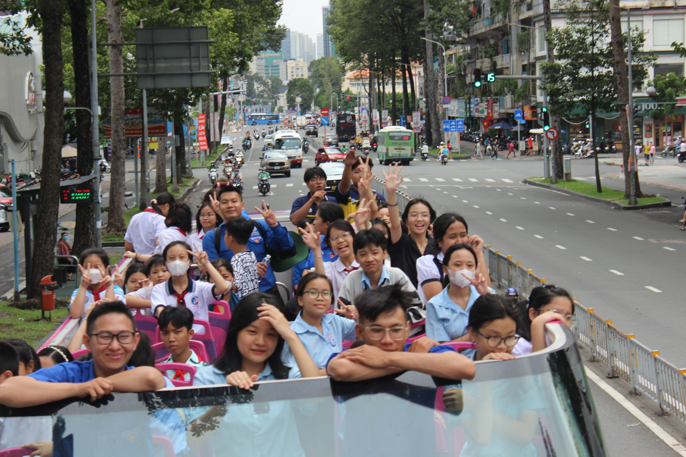 | Tham gia hành trình, các em thiếu nhi cùng dâng hương Bác Hồ, trải nghiệm xe buýt 2 tầng đến các địa danh văn hóa của thành phố, tham quan bảo tàng TPHCM, xem xiếc và thưởng thức các tiết mục văn nghệ thiếu nhi tại Nhà hát Cải lương Trần Hữu Trang và dự tiệc tại khách sạn Kim Đô (quận 1). |