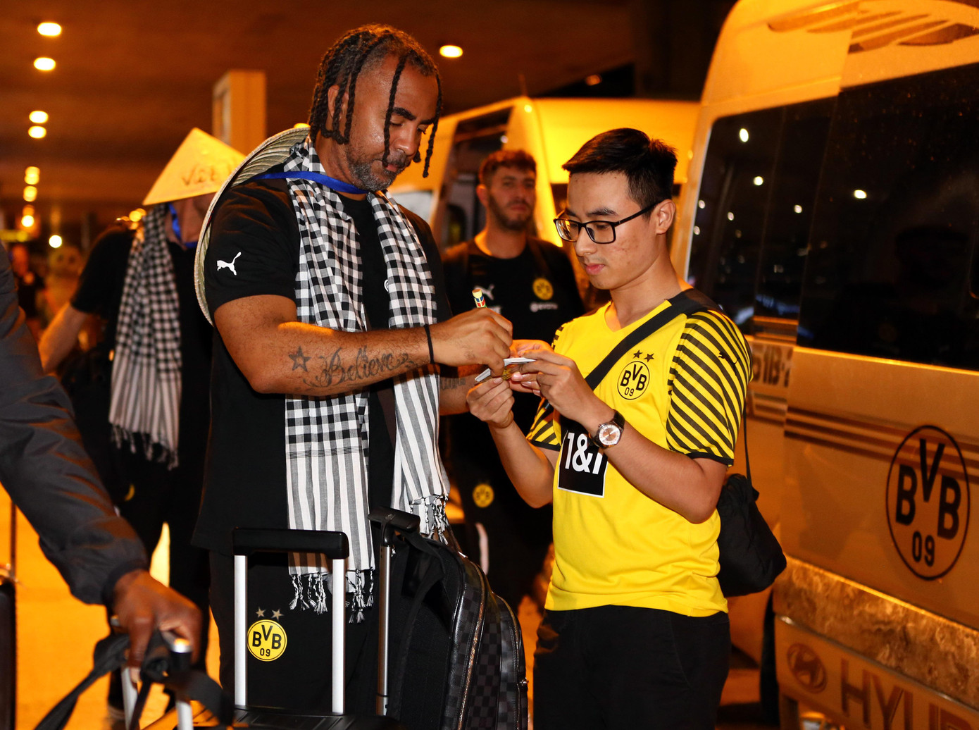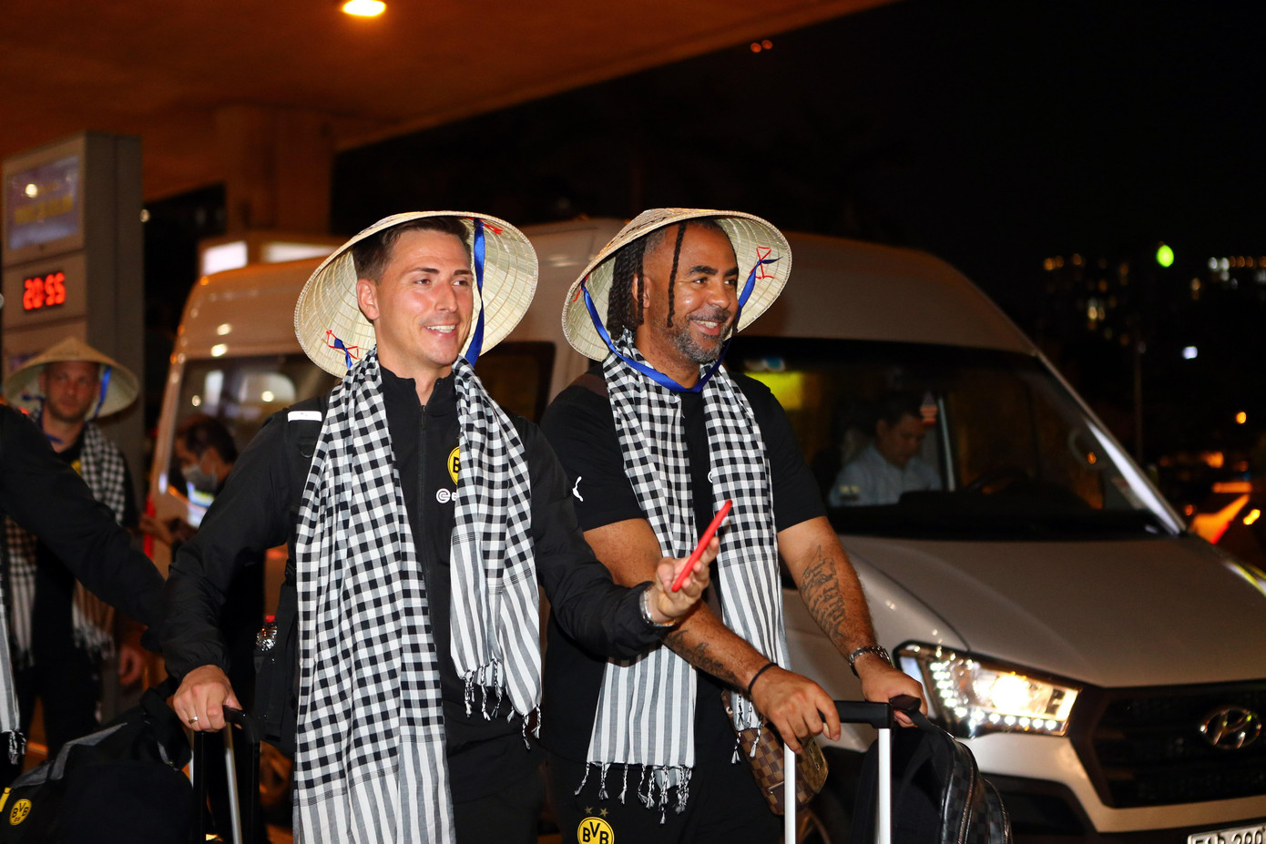 Các thành viên Borussia Dortmund có mặt tại sân bay Tân Sơn Nhất trong sự chào đón của Ban tổ chức, các CĐV của đội bóng Đức tại Việt Nam. Ngay khi xuất hiện, Jan Koller cùng những tên tuổi lừng danh một thời của trời Âu được chào đón nồng nhiệt. Đại diện BTC, dành tặng những phần quà mang tính biểu tượng của Việt Nam tới các thành viên đội.