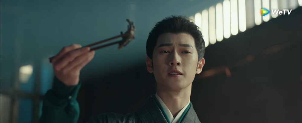 Tống Mặc cười khẩy, chế nhạo “trò trẻ con” của Định công công, rồi lôi ra một lọ bột. Chàng đổ chúng vào bát nước, sau đó nhúng chân gà vào, khiến nó hóa đen co rúm lại. Tống Mặc lại đổ một lọ khác vào chậu nước. Mặc ánh mắt hoảng hốt của Đậu Chiêu, Tống Mặc kéo mạnh tay nàng, nhúng thẳng vào chậu nước. Nhưng đau đớn đâu không thấy, Đậu Chiêu lại thấy vết thương trên tay mình dần dịu lại.