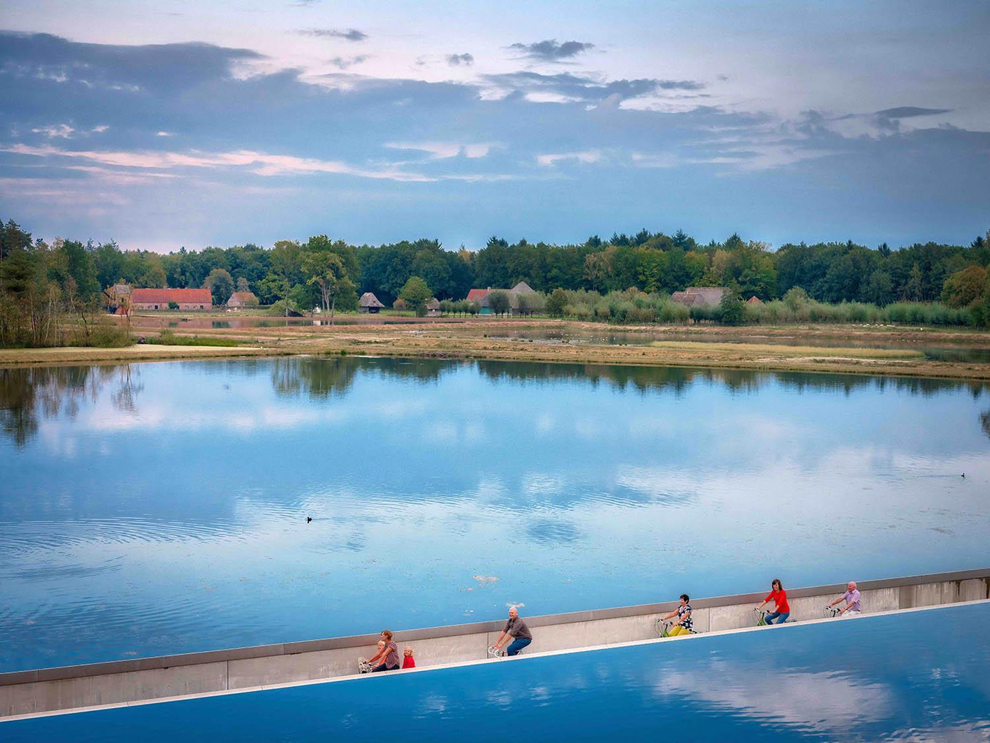 Con đường độc đáo này nằm ở vùng đầm lầy De Wijers trong công viên Bokrijk (tỉnh Limburg, Bỉ). Kể từ khi Cycling Through Water được mở cửa, nó đã trở thành một trong những điểm hấp dẫn du khách nhất tại công viên.