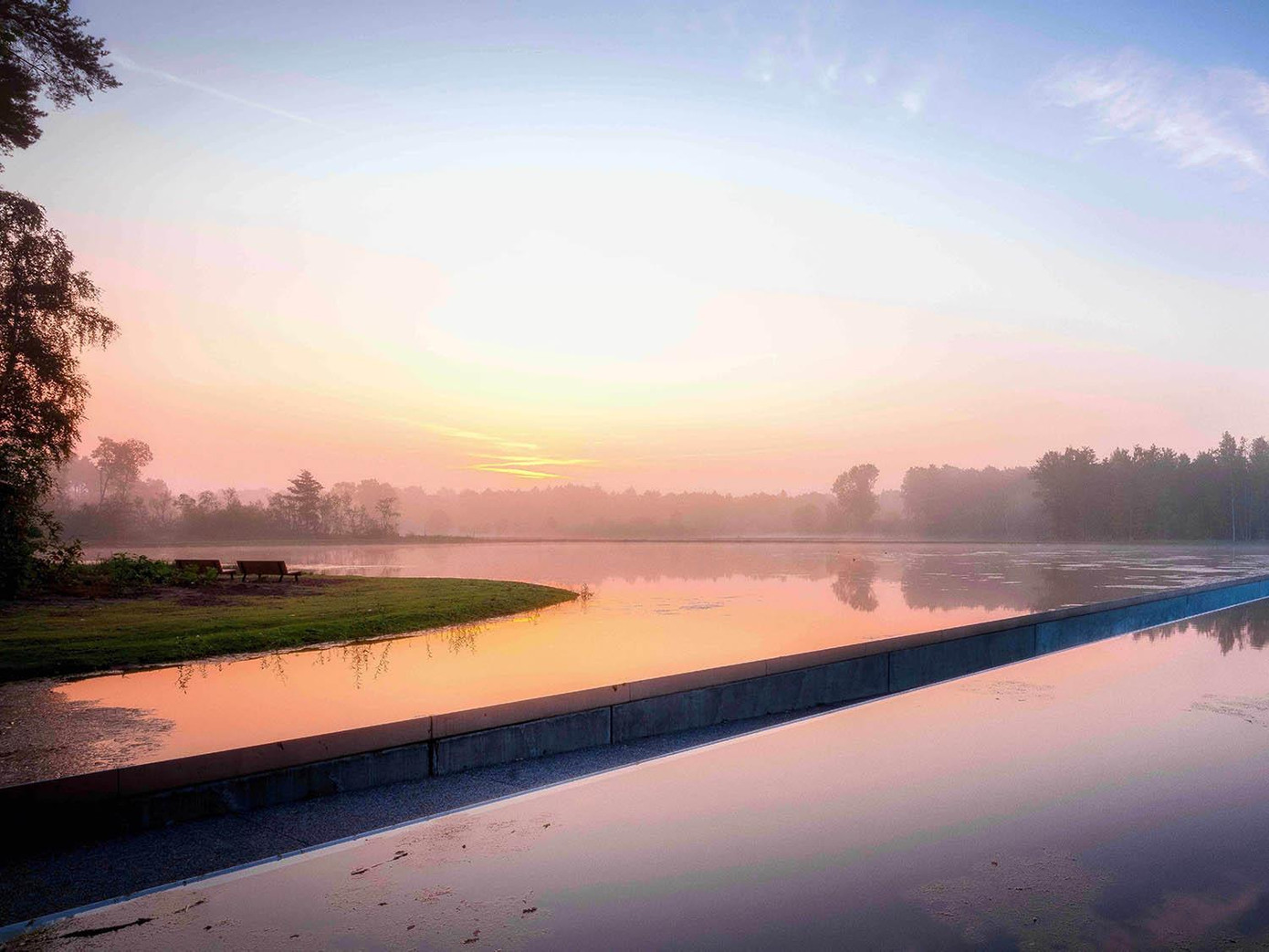 Nằm xuyên qua một hồ nước lớn với cảnh quan tuyệt đẹp, con đường chạy dài 200m và có chiều rộng 3m. Bên trong công viên Bokrijk còn có một khu bảo tồn ngoài trời với "bộ sưu tập" những tòa nhà độc đáo từ thời đại Flemish. Khuôn viên mát mẻ, cực "chill" nơi đây đã mang đến những trải nghiệm tuyệt vời cho du khách tới tham quan, tản bộ hoặc đạp xe ngang qua.
