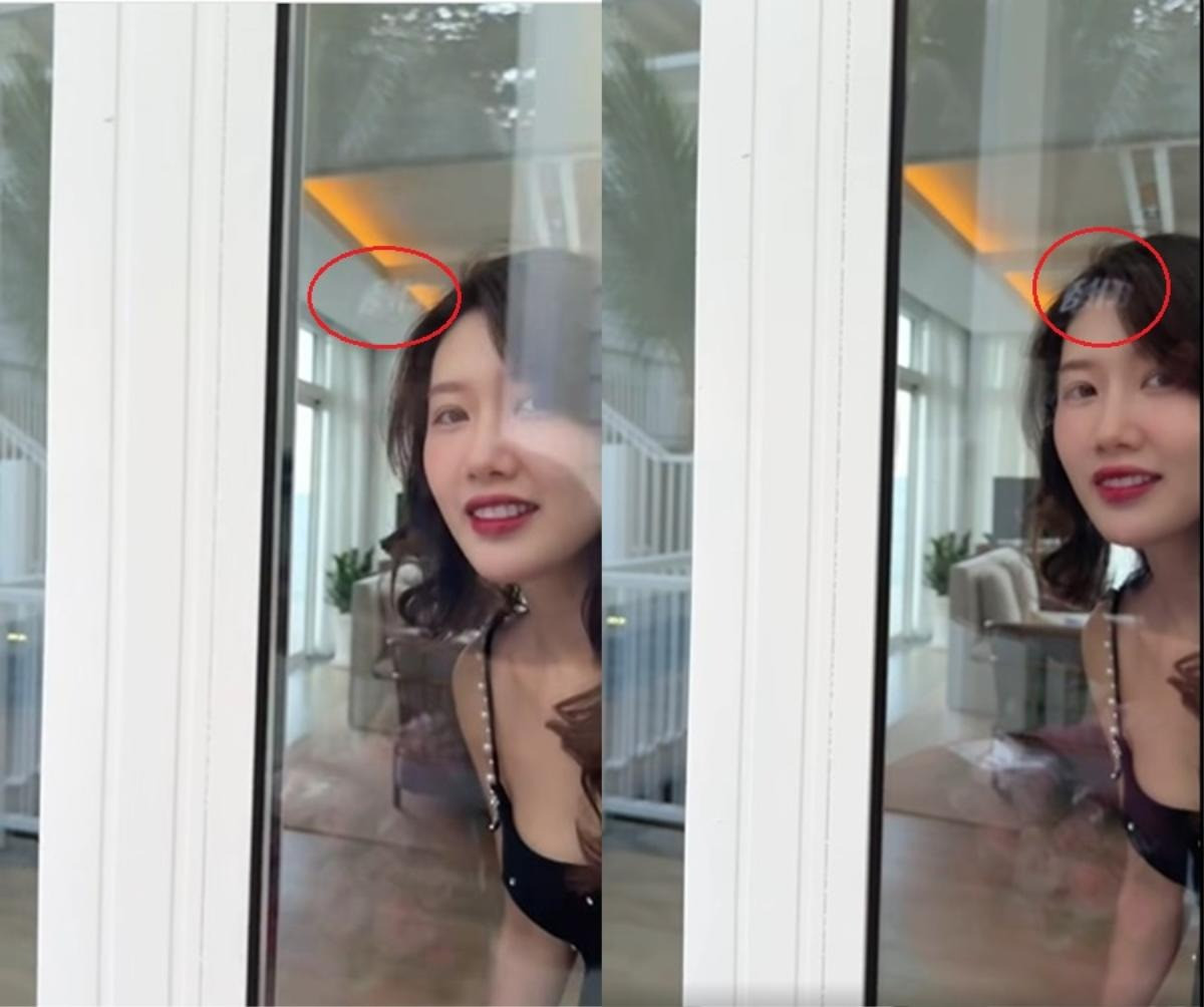 Bởi trong cánh cửa kính nơi Thúy Ngân đứng lấp ló đã phản chiếu bóng dáng một chàng trai đội mũ lưỡi trai có thêu chữ Hàn Quốc màu trắng. Trùng hợp làm sao, những chữ cái ấy lại giống hệt chiếc mũ mà Võ Cảnh đội khi đi chơi pickleball với Thúy Ngân vào mấy ngày trước. Thế là đủ để netizen nhanh chóng khoanh vùng được nhân vật bí ẩn, chứng tỏ Võ Cảnh chính là crush trong video của Thúy Ngân.