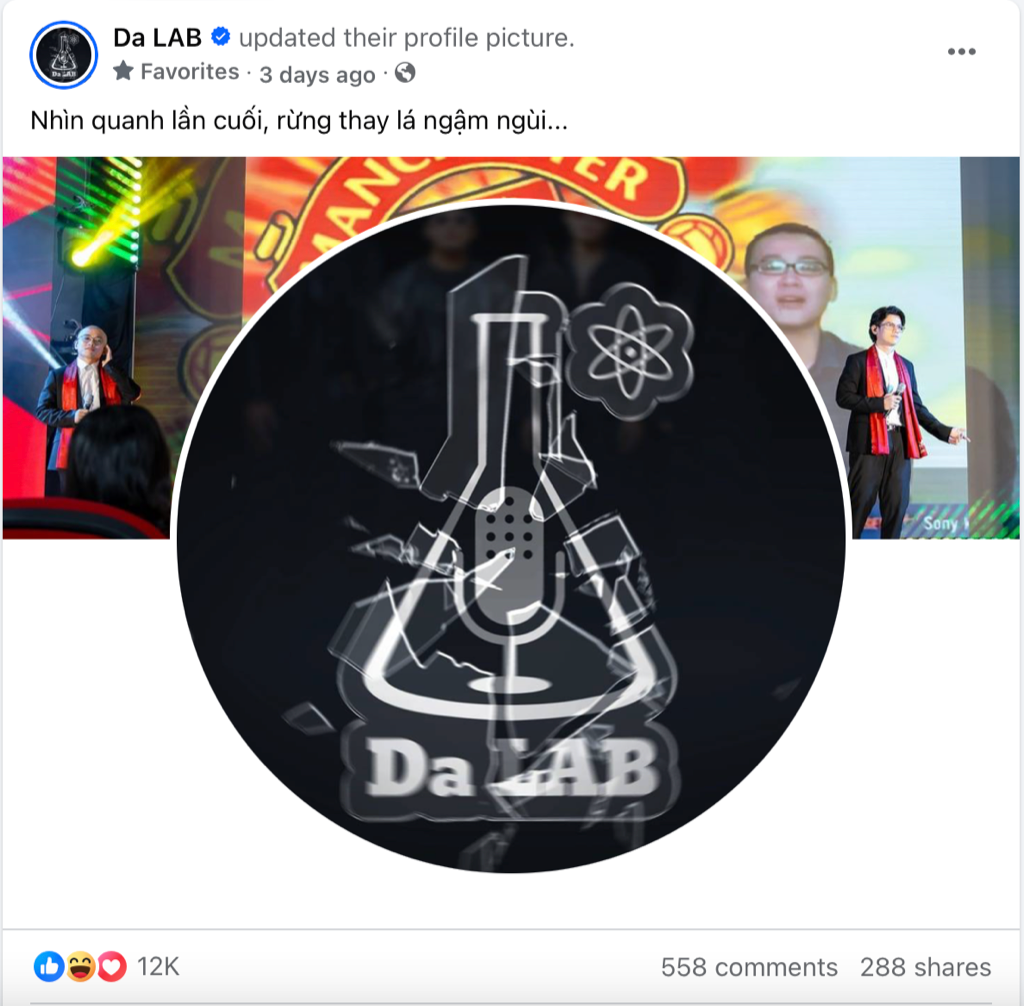 Trước đó, trên fanpage, Da LAB có động thái cập nhật ảnh đại diện mới là biểu tượng logo nhóm đã tan vỡ làm nhiều mảnh với background phía sau là 4 thành viên. Điều này khiến cư dân mạng đồn đoán Da LAB "có biến", thậm chí không loại trừ khả năng nhóm bước vào “quy luật tan rã” của V-Pop.