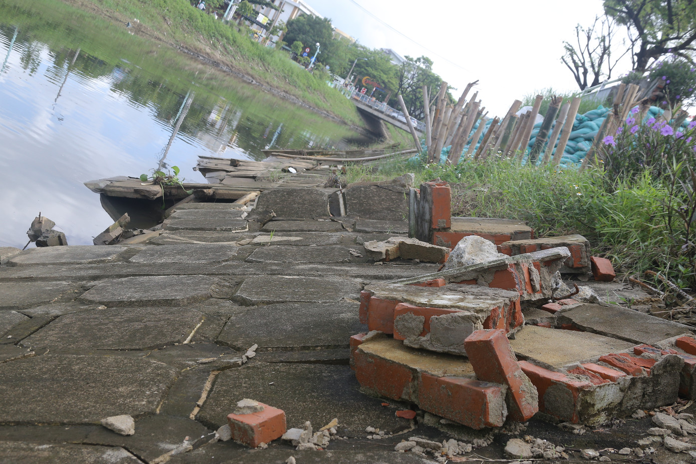 | Đoạn bờ kè kênh Phú Lộc (phường Thanh Khê Tây, quận Thanh Khê) nằm cạnh Trường Tiểu học Lê Văn Tám, bị sụt lún nghiêm trọng trong đợt mưa lũ tháng 10 vừa qua. |