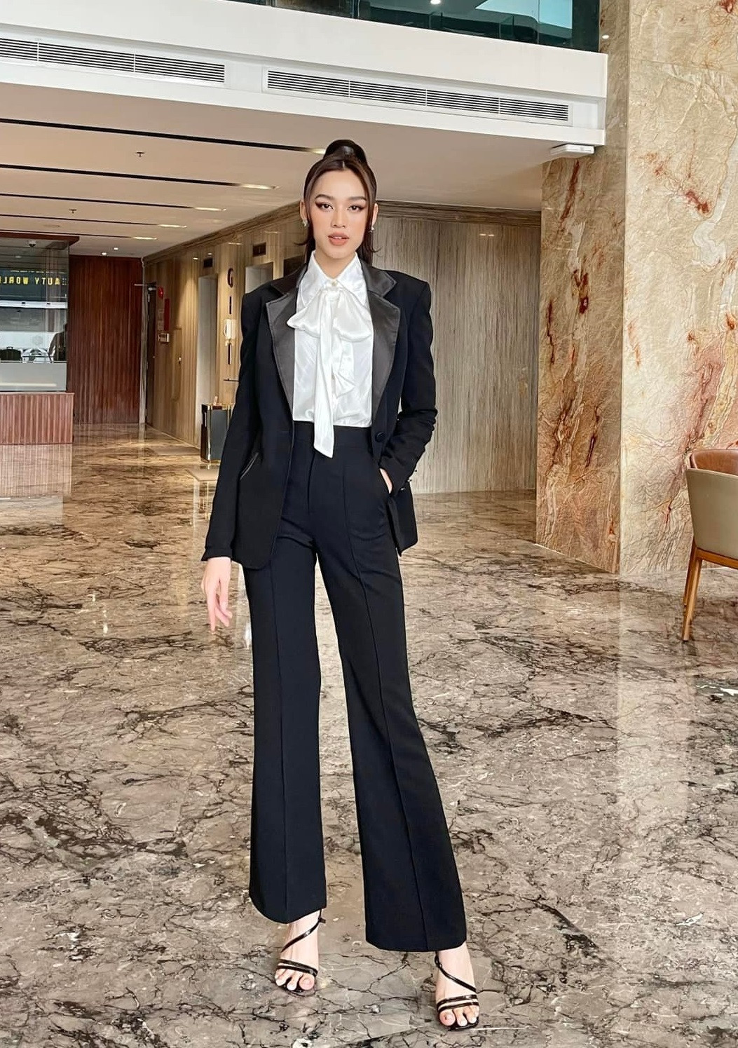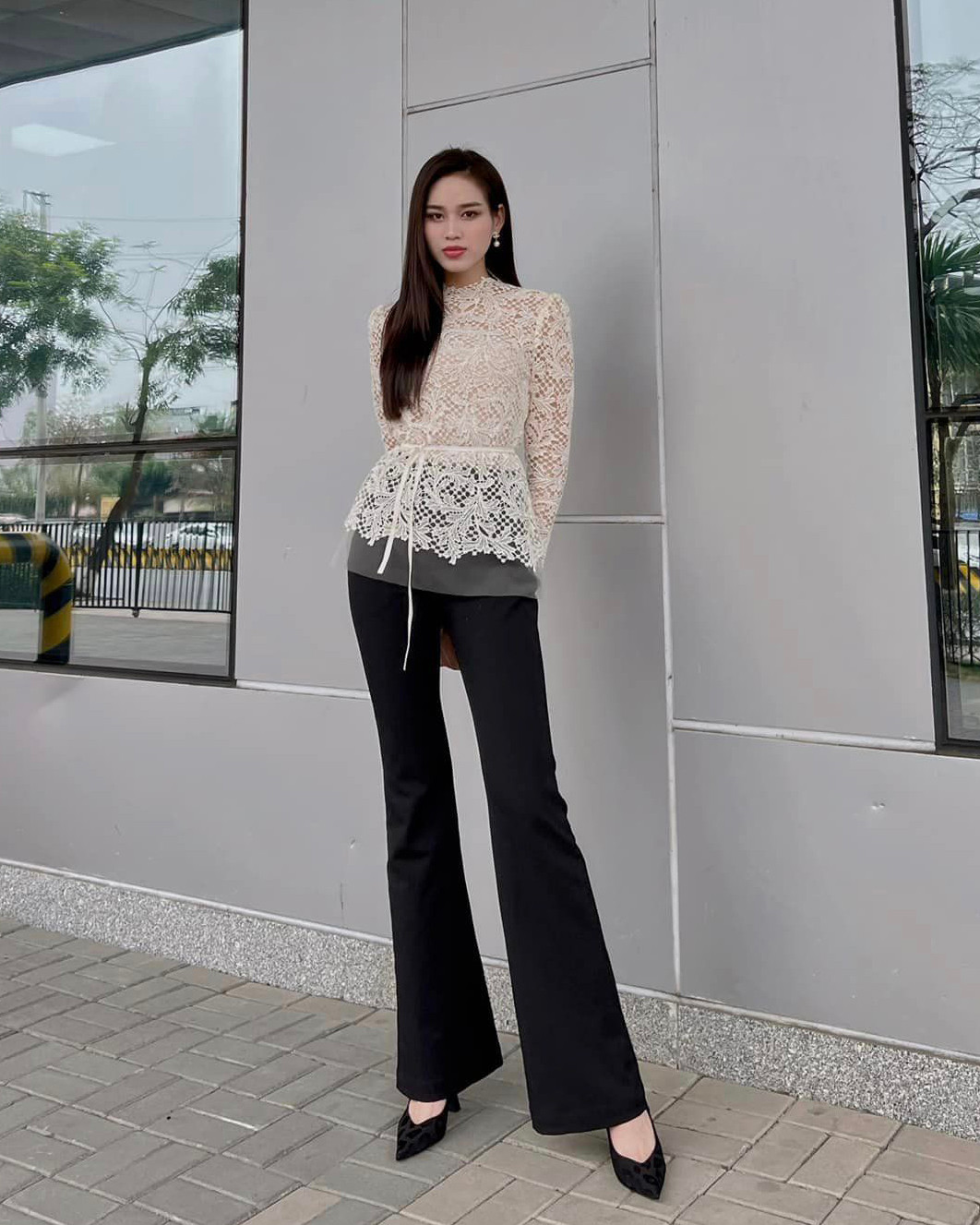 Nhưng thời gian gần đây, Hoa hậu Việt Nam 2020 lại chuyển hướng sang những mẫu quần siêu rộng. Quần ống rộng đi cùng áo ôm giúp nàng hậu khoe được đôi chân dài miên man, lẫn vòng eo nhỏ xíu.