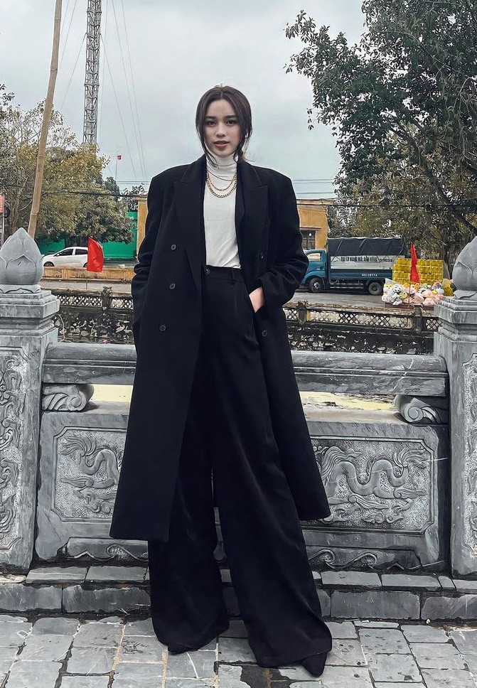 Ngay cả trong mùa Đông, Đỗ Thị Hà cũng thích phối đồ cùng quần ống rộng để giữ ấm cơ thể mà nhìn vẫn vô cùng thời thượng.