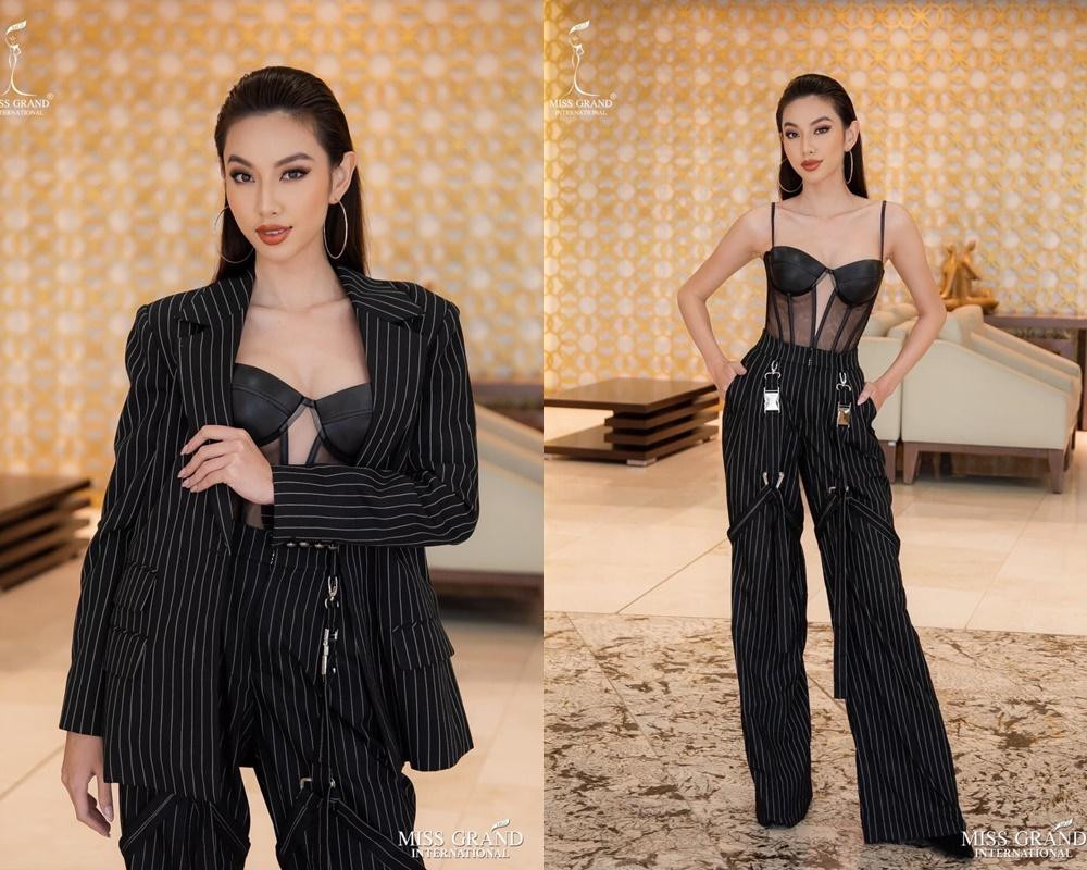 Hoặc bộ suit này của Thùy Tiên cũng nhận được nhiều lời khen. Bởi khi khoác áo vào, nhìn cô chỉn chu mà không kém phần quyến rũ nhưng khi bỏ áo ngoài ra, ai cũng phải công nhận nhìn đương kim Hoa hậu Hòa bình Quốc tế quá sức 'nóng bỏng'
