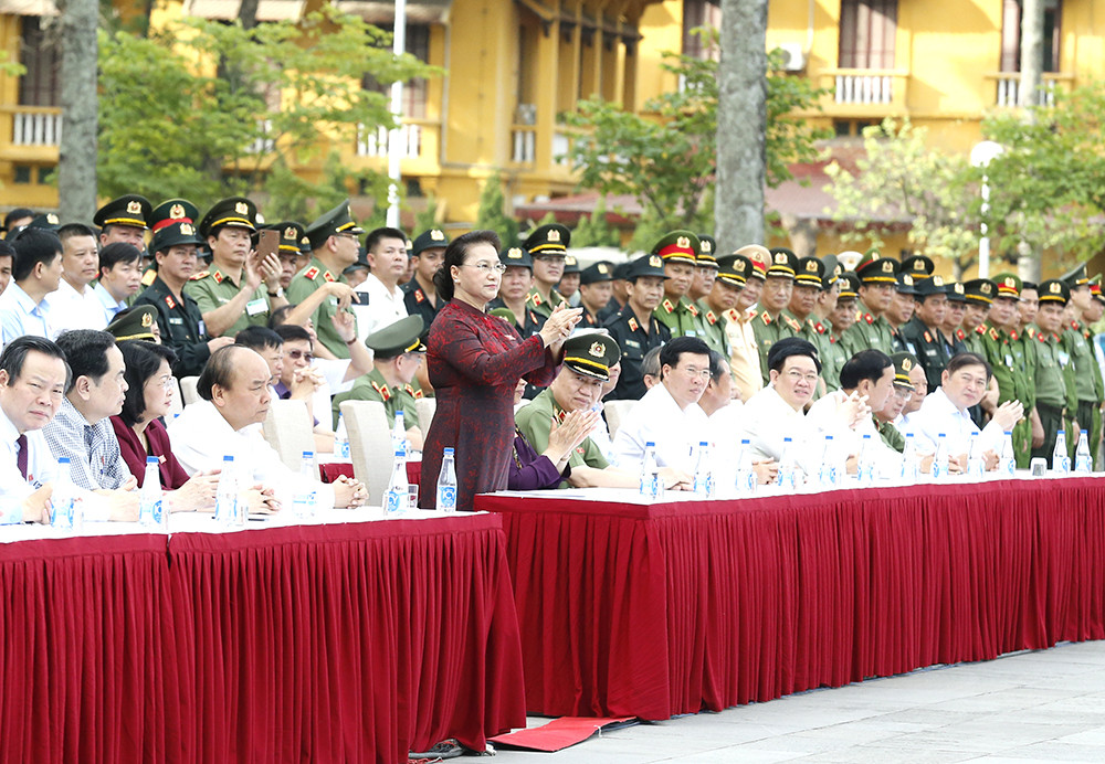 Thay mặt lãnh đạo Đảng, Nhà nước, Chủ tịch Quốc hội Nguyễn Thị Kim Ngân chúc mừng Bộ Công an, Bộ Tư lệnh Cảnh sát cơ động có thêm một đơn vị tác chiến mới trên mặt trận xung kích là Đoàn Cảnh sát cơ động kỵ binh.