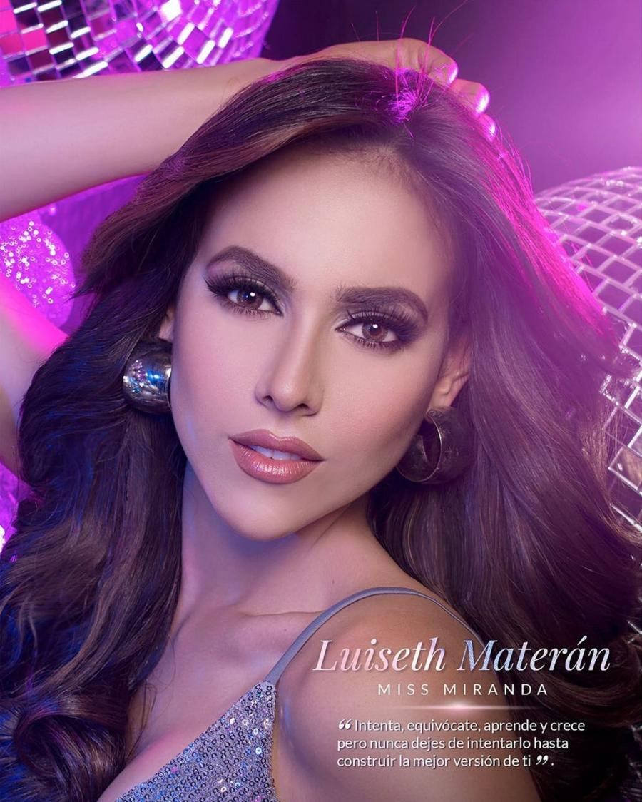 Luiseth Materán từng tham dự Miss Universe Venezuela năm 2020 và lọt Top 5 chung cuộc. Cô là một diễn viên, đồng thời là người mẫu thời trang, năm nay Luiseth 24 tuổi.