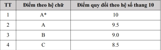 Vì hai chứng chỉ này ghi điểm theo hệ chữ, Đại học Bách khoa Hà Nội quy đổi điểm số như sau: