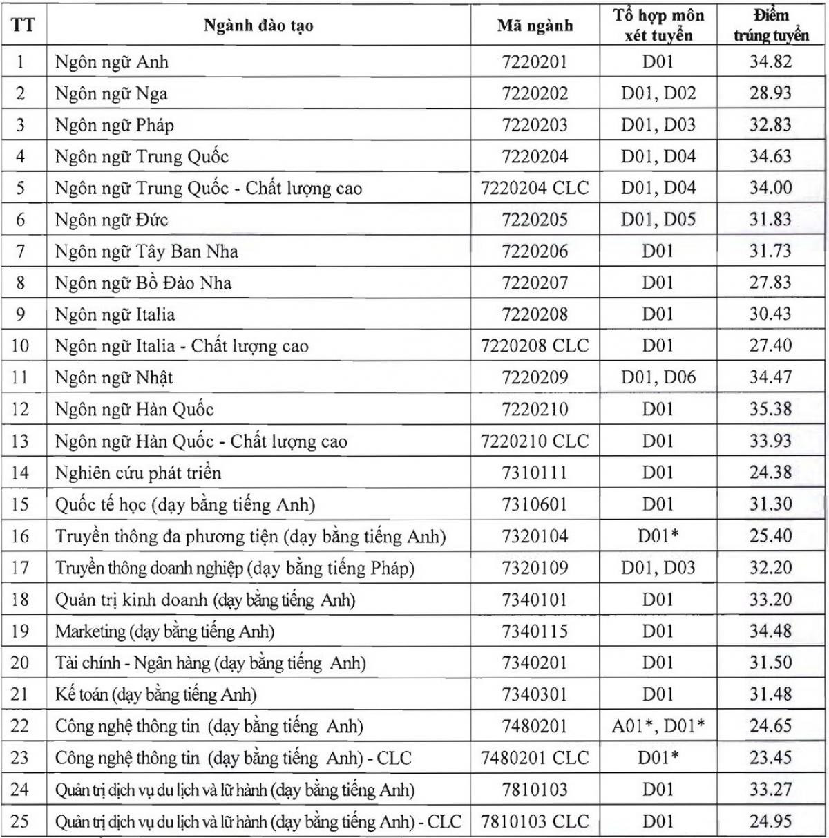 Năm 2020, ĐH Hà Nội cũng lấy điểm sàn ở ngưỡng từ 16 điểm, điểm trúng tuyển giao động từ 23,45 - 35,38.