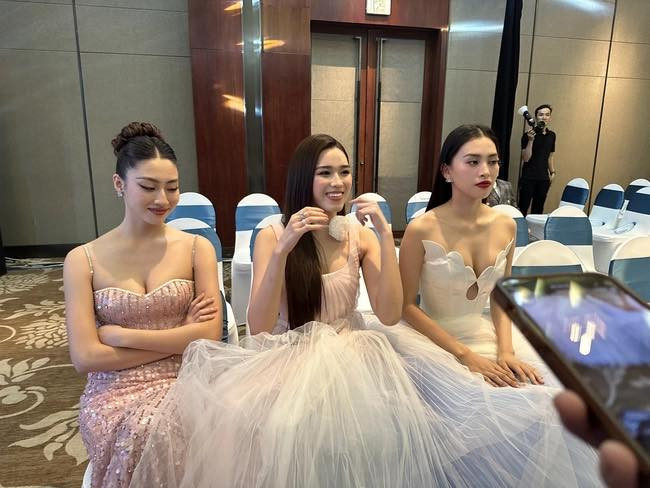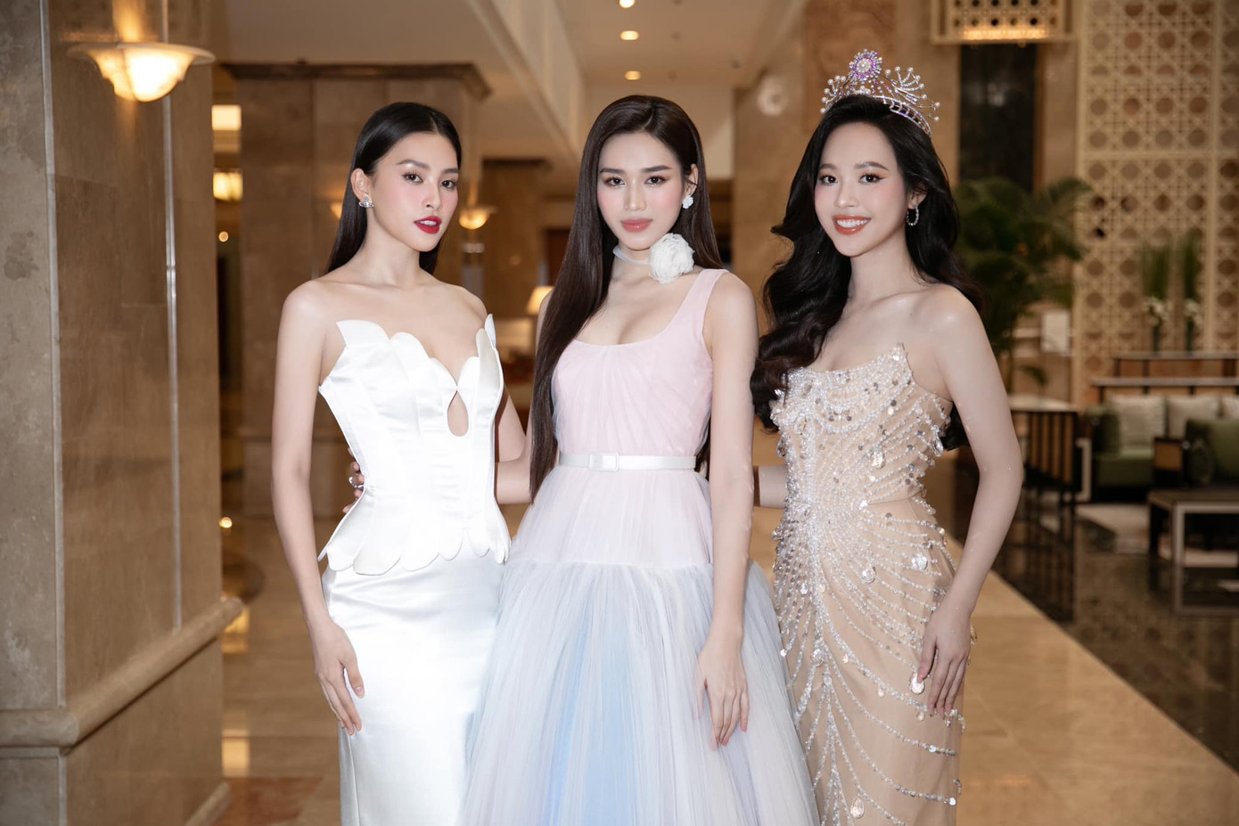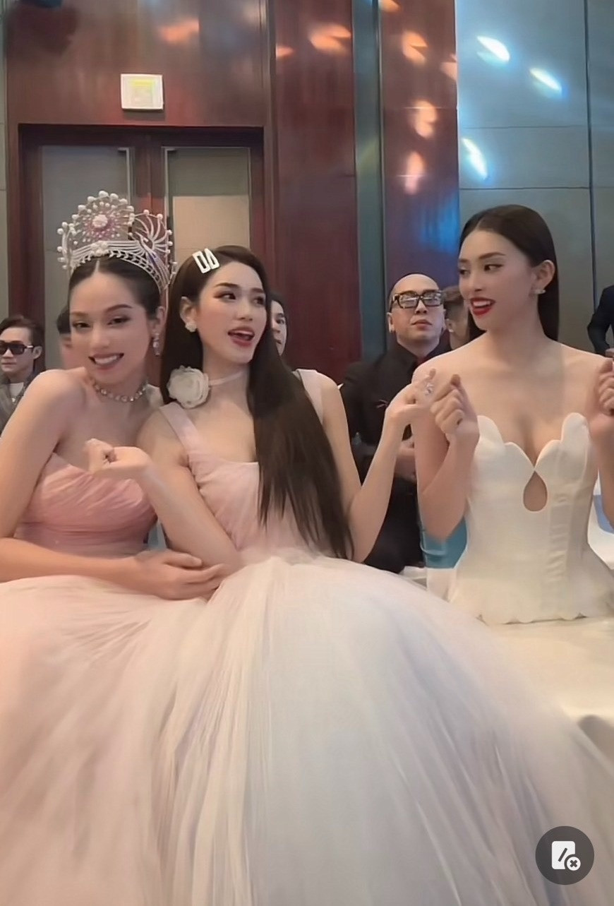 Trong khán phòng, ba Hoa hậu Việt Nam gần đây nhất là Tiểu Vy, Đỗ Thị Hà và Thanh Thủy cũng có dịp ngồi cạnh nhau. Ba cô gái mỗi người mang vẻ đẹp khác nhau và khi ở chung một khung hình, khán giả chỉ biết trầm trồ vì bầu trời visual rực rỡ.
