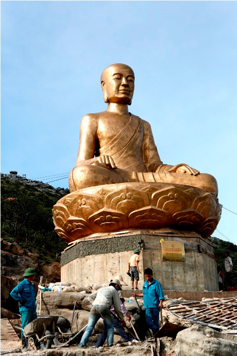 Dự án dựng tượng Phật hoàng Trần Nhân Tông - Đệ nhất Tam Tổ Trúc Lâm Yên Tử được triển khai từ tháng 11/2009, do Ban Trị sự Giáo hội Phật giáo Quảng Ninh làm chủ đầu tư với tổng vốn gần 80 tỷ đồng, huy động từ nguồn xã hội hóa. Công trình được dựng trên khu đất rộng 2.200m², cao hơn 920m so với mực nước biển, bao gồm các hạng mục như: khu vực đặt tượng, sân hành lễ, không gian tượng An Kỳ Sinh, sân tập kết và các hạng mục khác. Tượng Phật hoàng Trần Nhân Tông được đúc liền khối bằng đồng nhập khẩu từ Australia. Tượng đúc liền khối ngồi trên bệ được làm bằng bê tông cốt thép ốp đá điêu khắc cao hơn 3m, đài sen hơn 2m, thân tượng đồng cao 9,9m, tượng có tổng trọng lượng 138 tấn. Đây là công trình góp phần tôn vinh kinh đô Phật giáo Yên Tử, Phật giáo Việt Nam, những giá trị văn hóa và lòng tự hào dân tộc, đồng thời góp phần phục vụ nhu cầu tín ngưỡng của nhân dân, phật tử mỗi khi hành hương về Yên Tử.