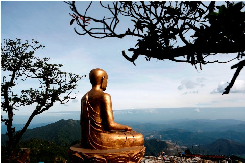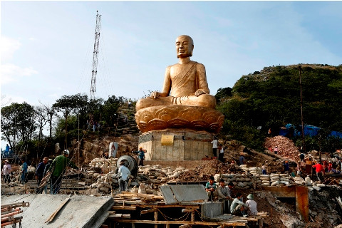 | Các nhà sư thăm công trình trên An Kỳ Sinh Yên Tử. |