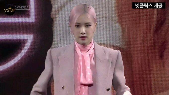 Trong một sự kiện giới thiệu album đầu tay của BLACKPINK, Rosé đã diện nguyên set đồ Saint Laurent gồm áo blouse hồng nhạt, áo blazer dáng dài và thêm quần soóc đen, tạo nên tổng thể vừa thanh lịch vừa ấn tượng.