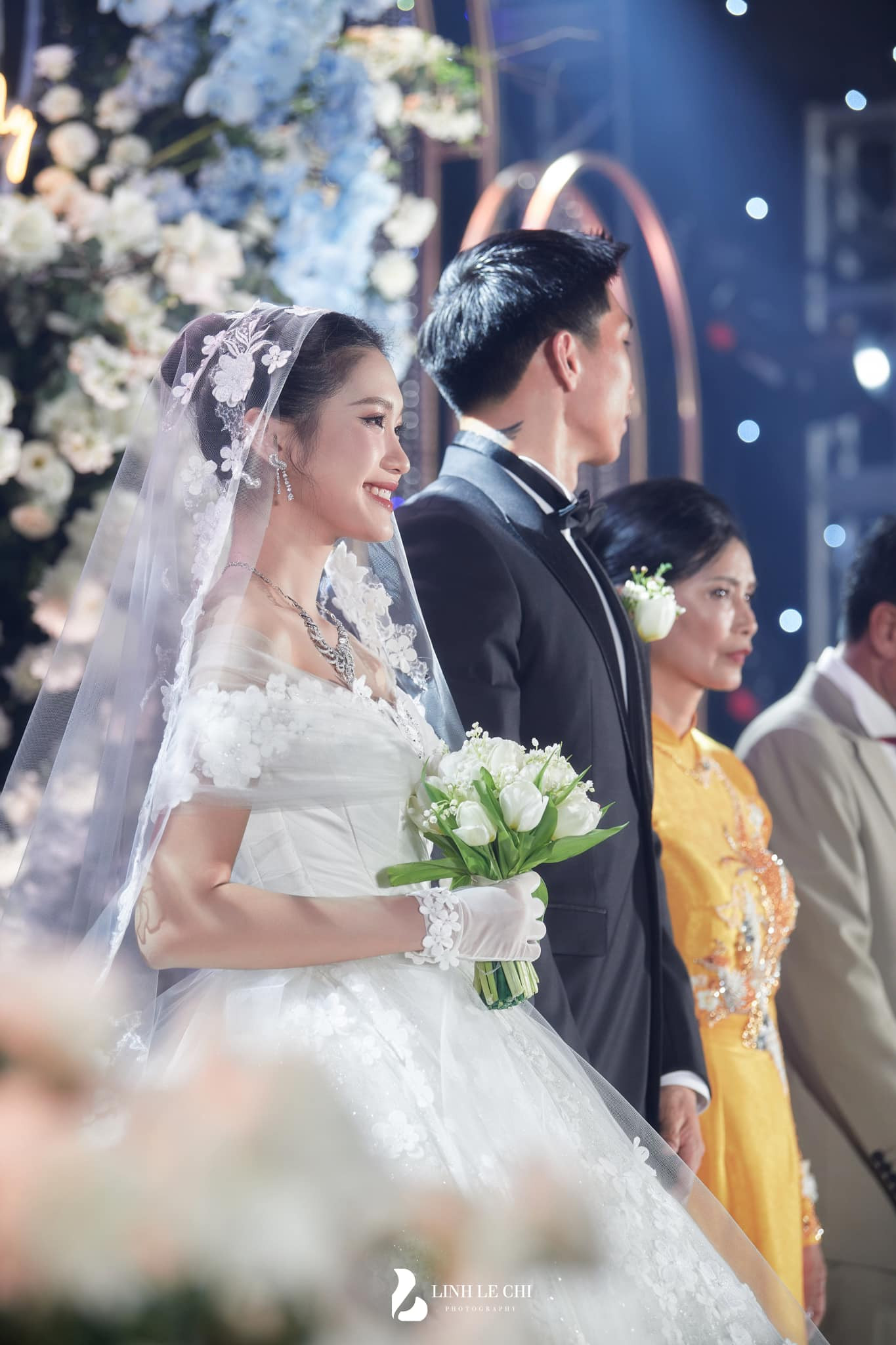 Và đến khi cặp đôi nổi tiếng tổ chức hôn lễ ở Hà Nội, netizen lại bất ngờ lần nữa khi Doãn Hải My cầm trên tay một bó hoa linh lan xinh xắn khi đứng đón khách. Xem chừng bà xã của Đoàn Văn Hậu dành tình cảm đặc biệt cho loại hoa này.