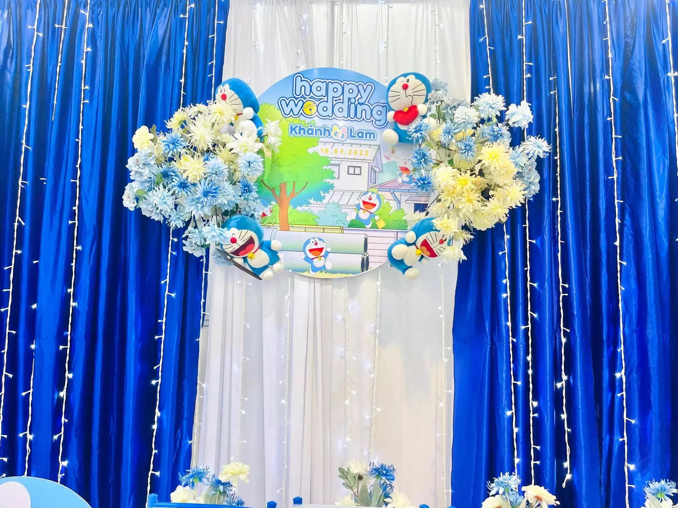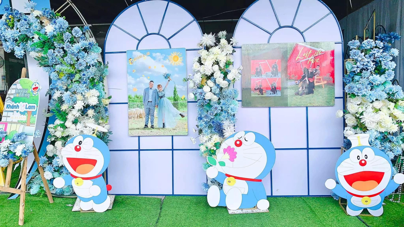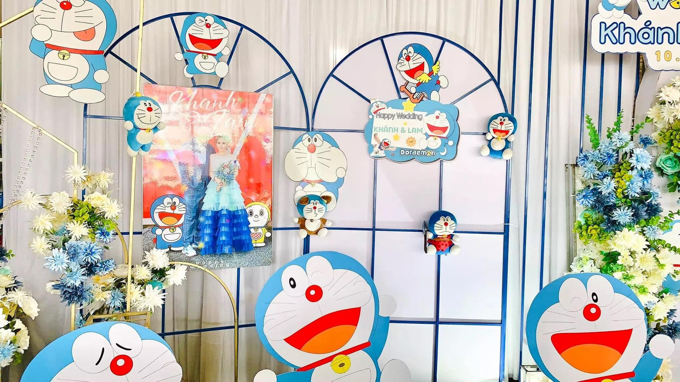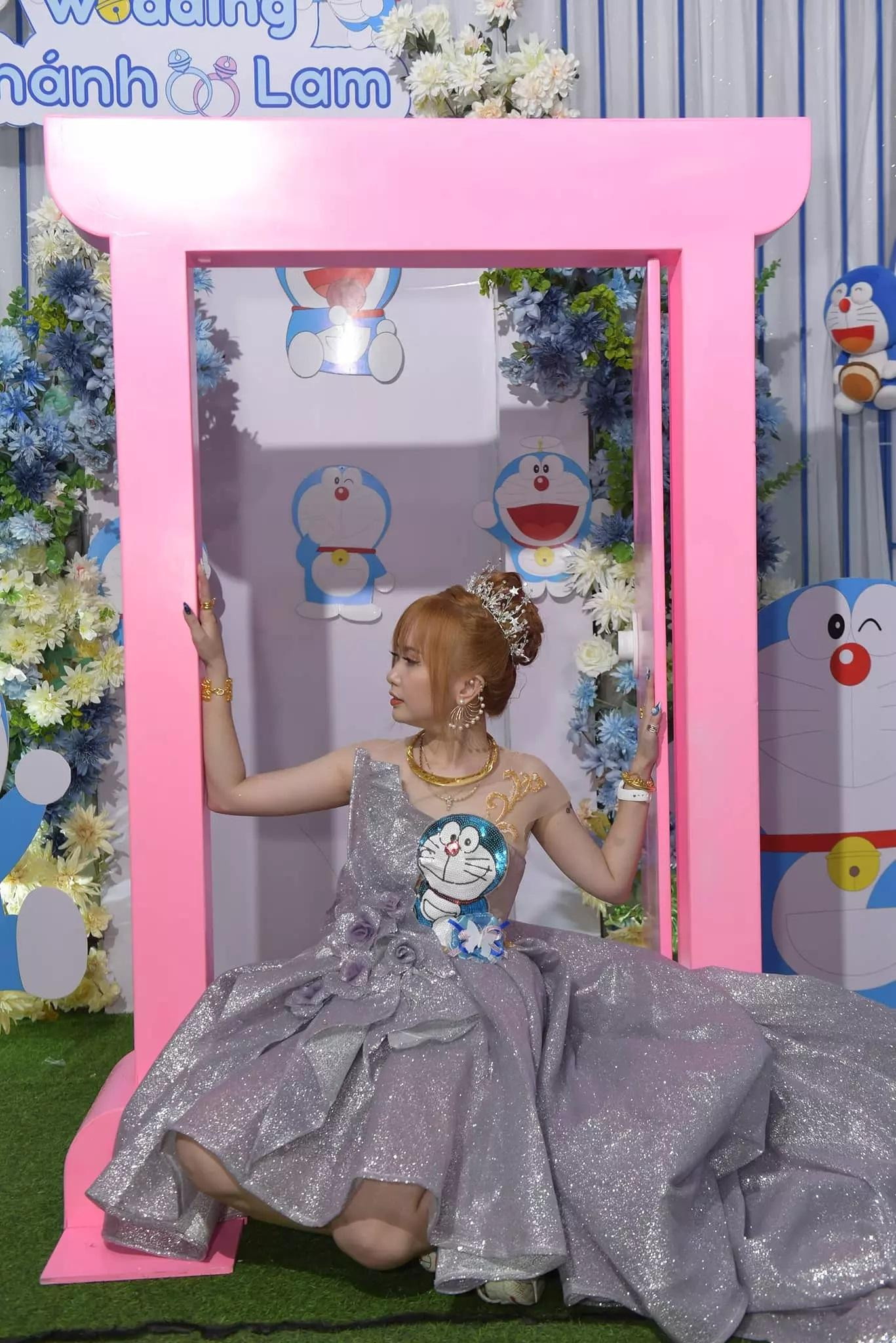Cô dâu Nguyễn Trương Khánh Lam (29 tuổi, Bạc Liêu) có niềm đam mê mãnh liệt với nhân vật Doraemon nên muốn tổ chức đám cưới ngập tràn hình ảnh chú mèo máy đáng yêu này.