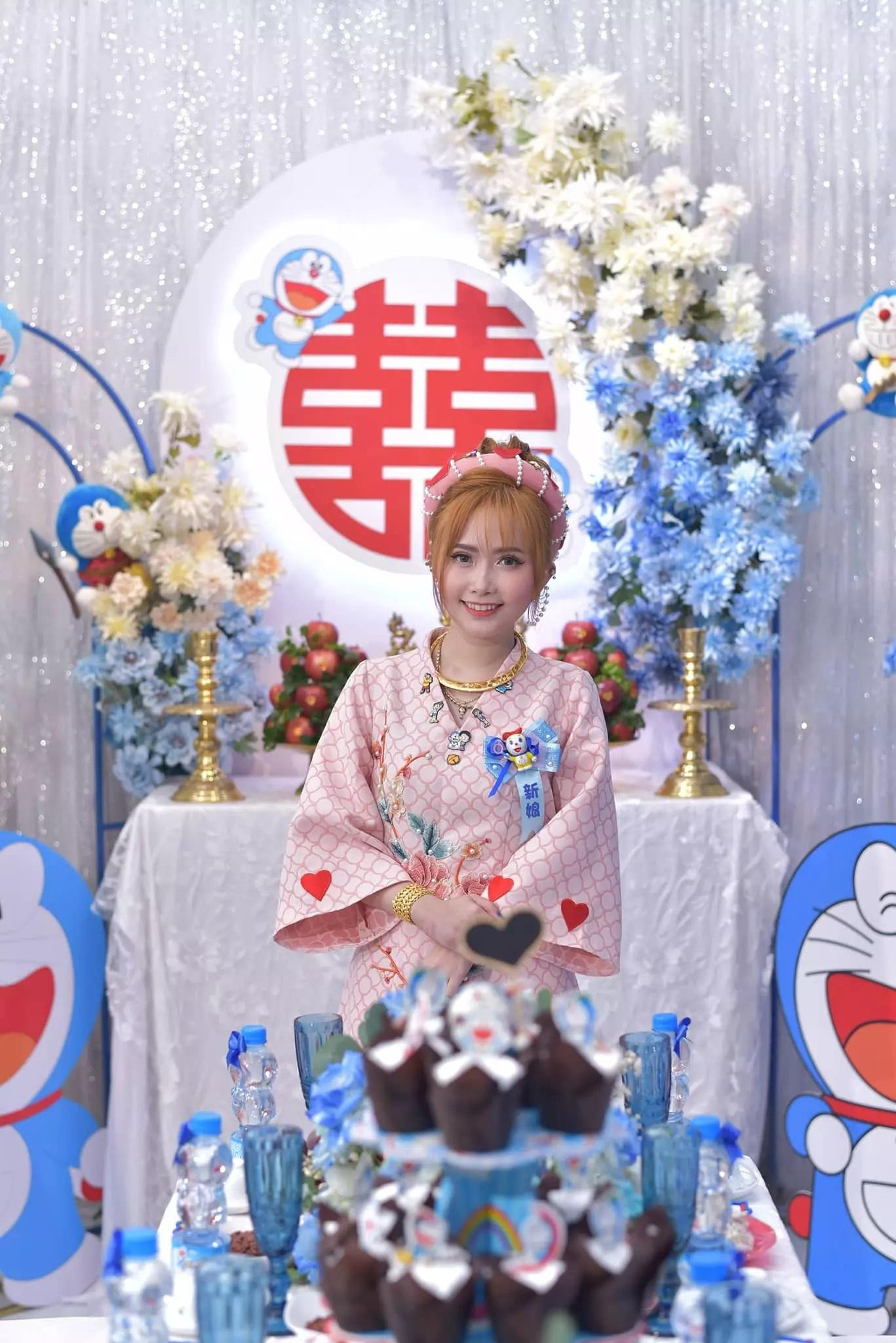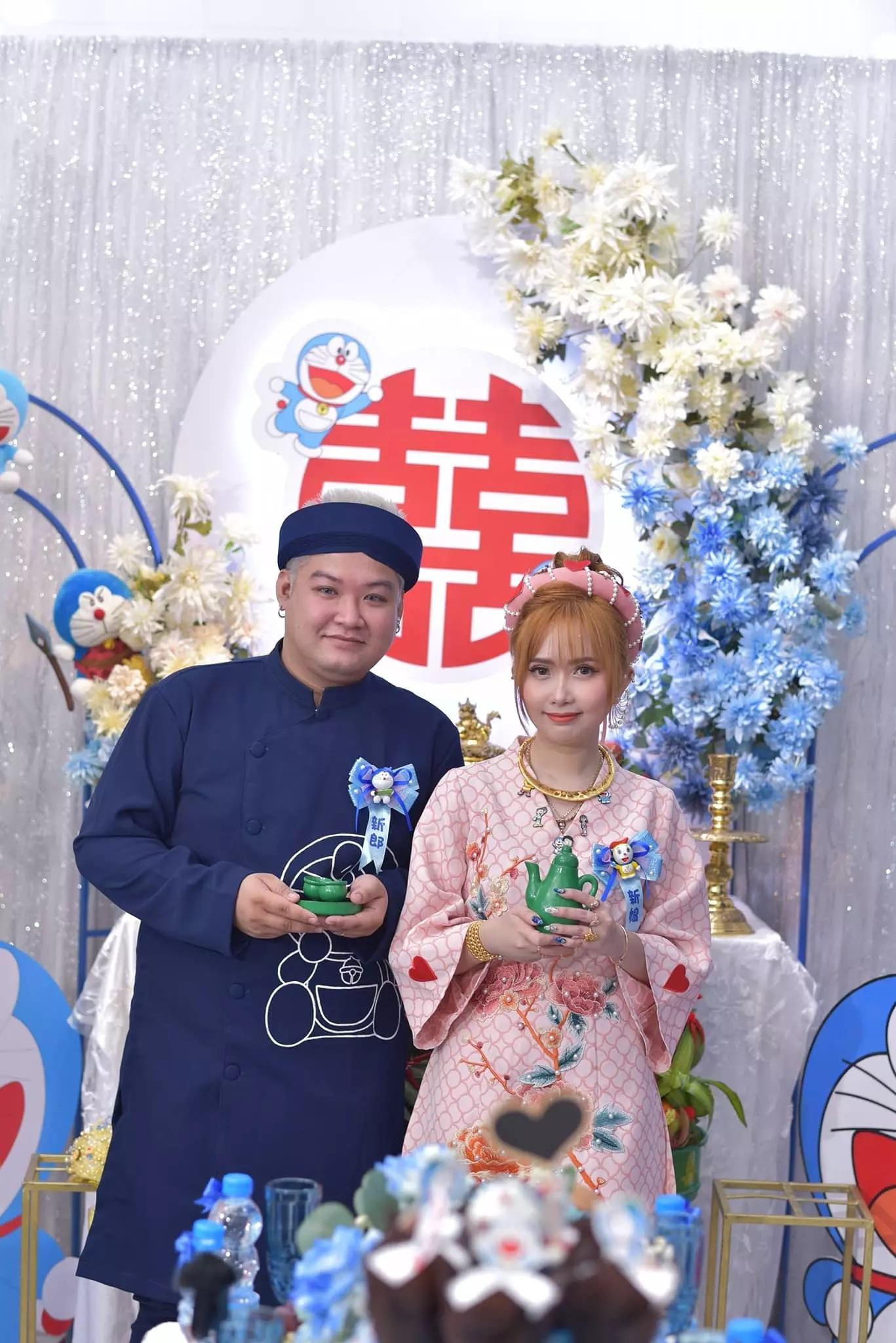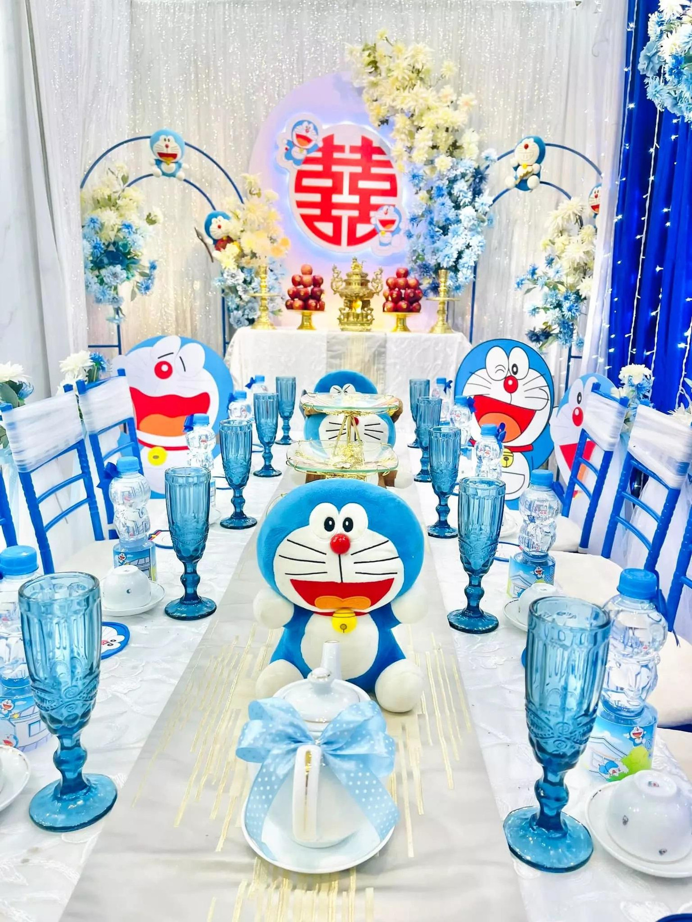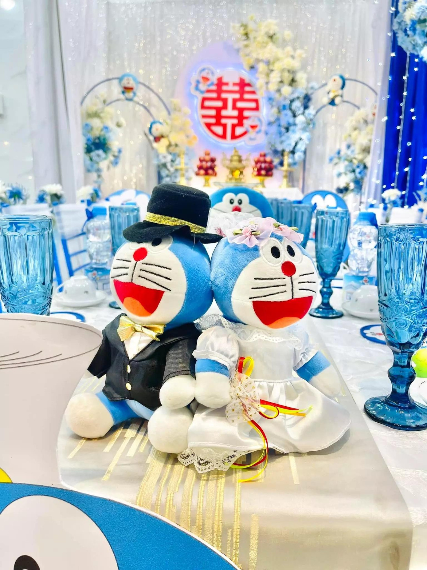 Cô dâu Nguyễn Trương Khánh Lam (29 tuổi, Bạc Liêu) có niềm đam mê mãnh liệt với nhân vật Doraemon nên muốn tổ chức đám cưới ngập tràn hình ảnh chú mèo máy đáng yêu này.