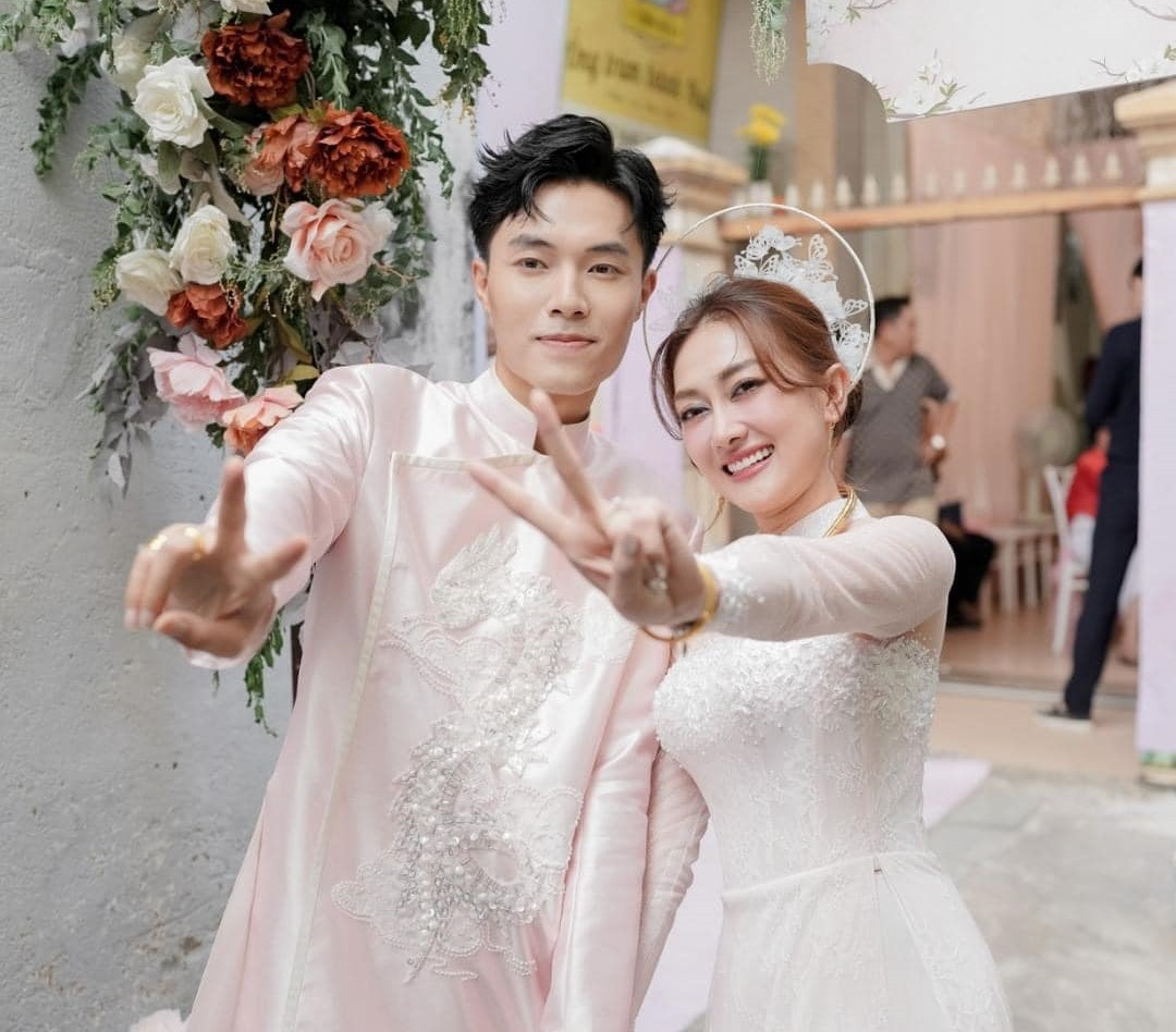 Xuất hiện trong ngày vui, cô dâu đã lựa chọn áo dài có thiết kế mới lạ với phần cổ được đính kết cầu kỳ. Chú rể cũng trở nên bảnh bao, tươi tắn trong trang phục đôi cùng "nửa kia". Cả hai đều nhận được sự khen ngợi từ cộng đồng mạng bởi nhan sắc "ăn trọn điểm".