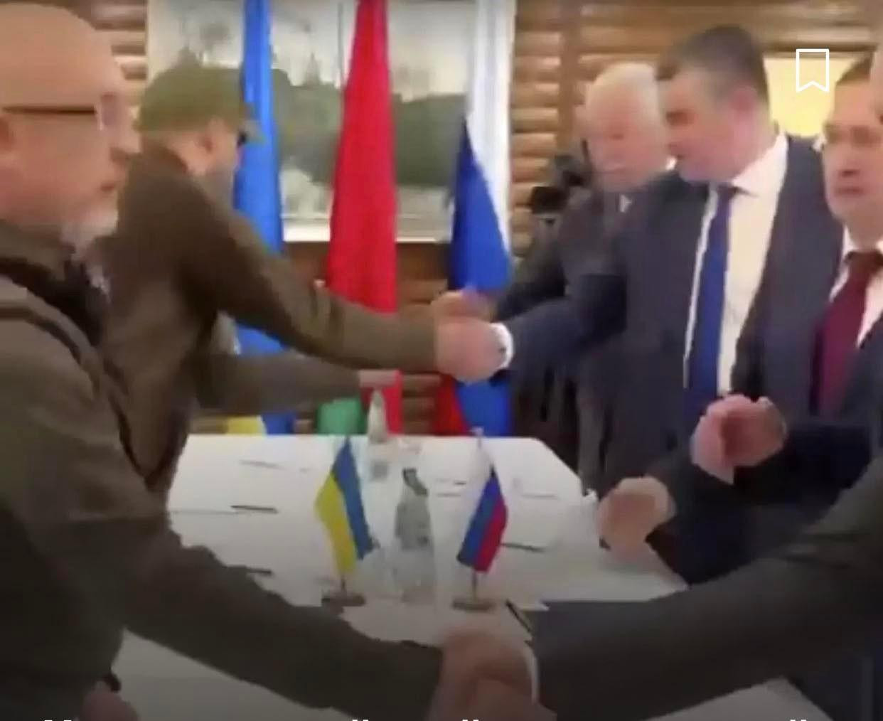 Đoàn đại biểu Nga đến trước và đợi đối tác Ukraine trong phòng. Khi các thành viên đoàn Ukraine bước vào phòng, hai bên đã bắt tay nhau.