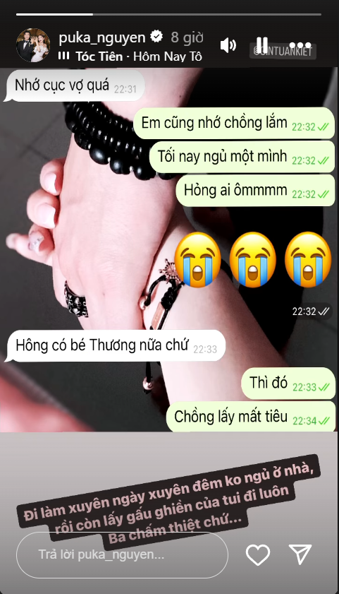Thế nhưng, đằng sau những khoảnh khắc "chu chu" vui vẻ cùng anh em, Gin Tuấn Kiệt lại bỗng hướng nội khi nhắc đến Puka: "Nhớ cục vợ quá".