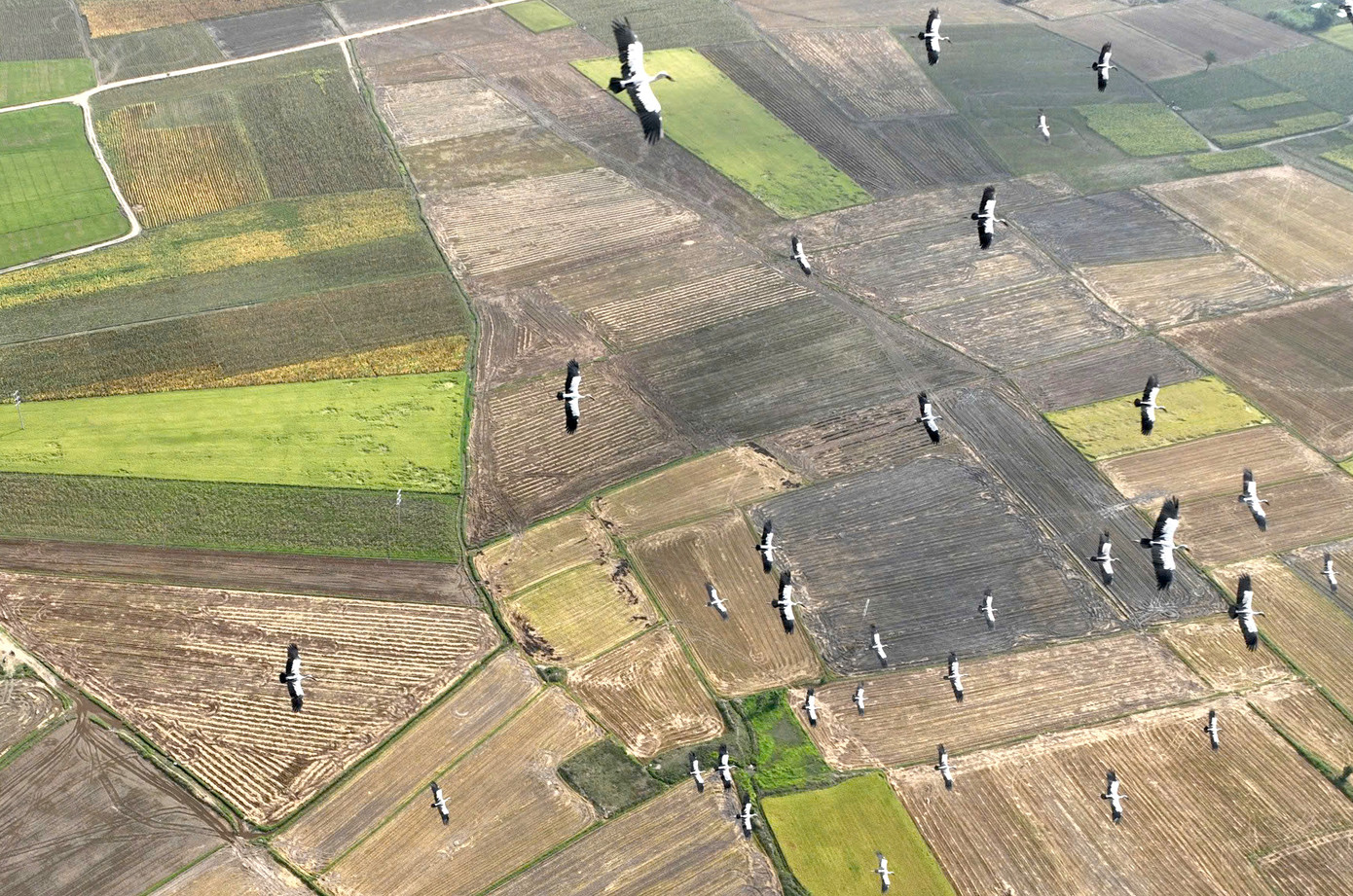 | Hàng trăm con cò nhạn bay khắp xã Ia Mrơn. Ảnh: Phạm Quý |