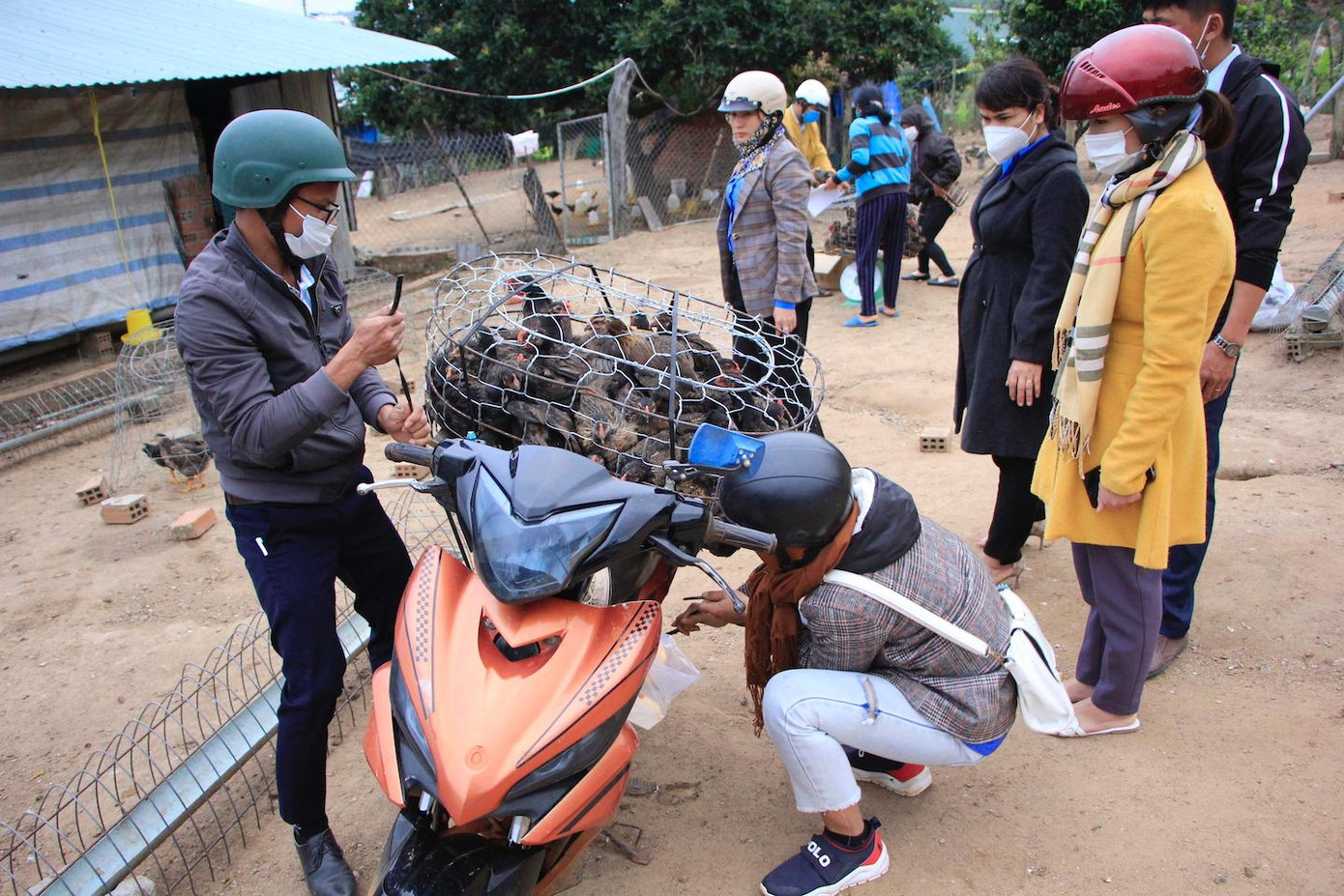 | Gà giống mỗi con nặng từ 3 đến 5 lạng, đã được tiêm vắc xin phòng chống các dịch bệnh gia cầm. Ước tính mỗi đàn gà khoảng 40 con. |