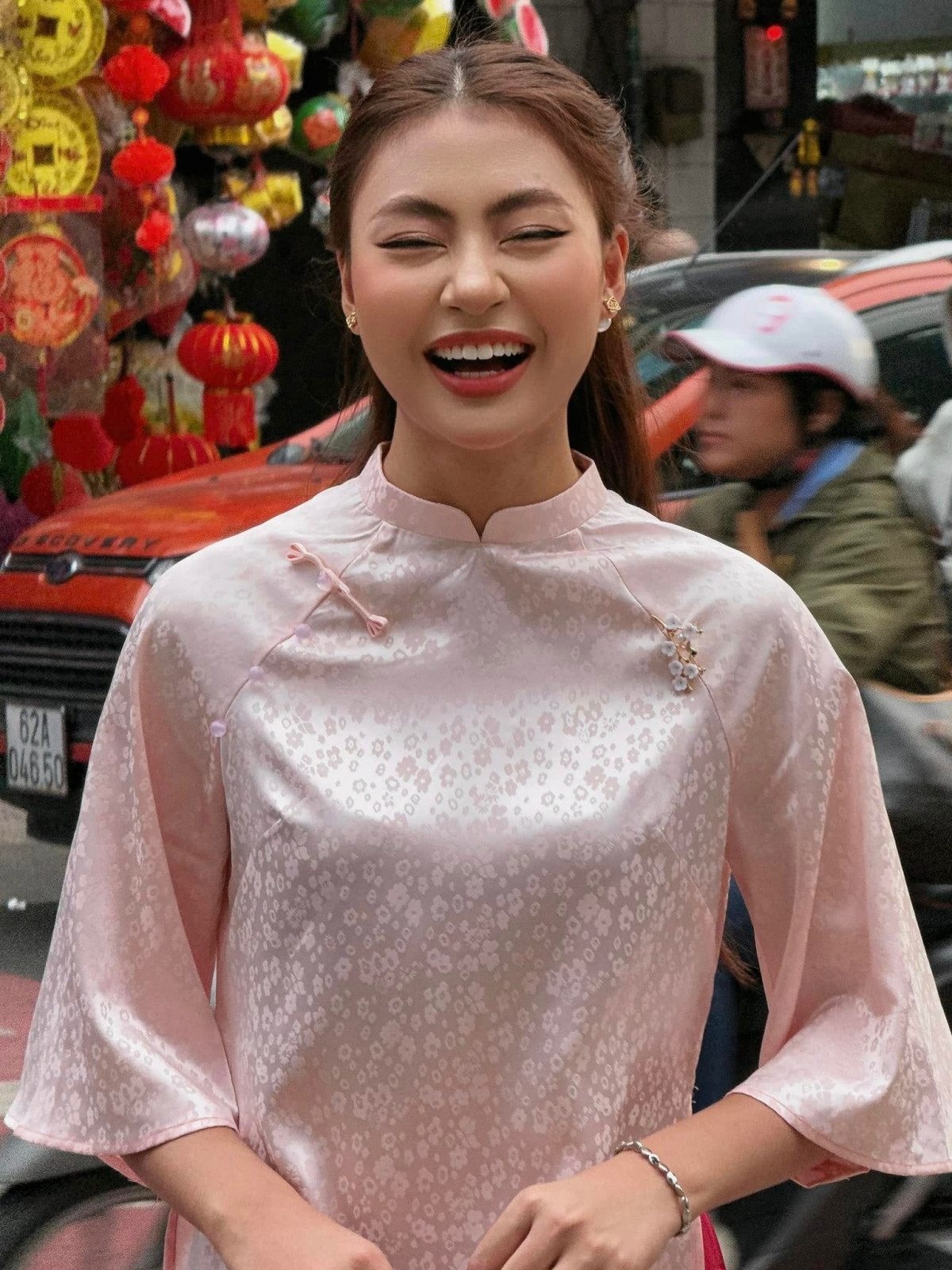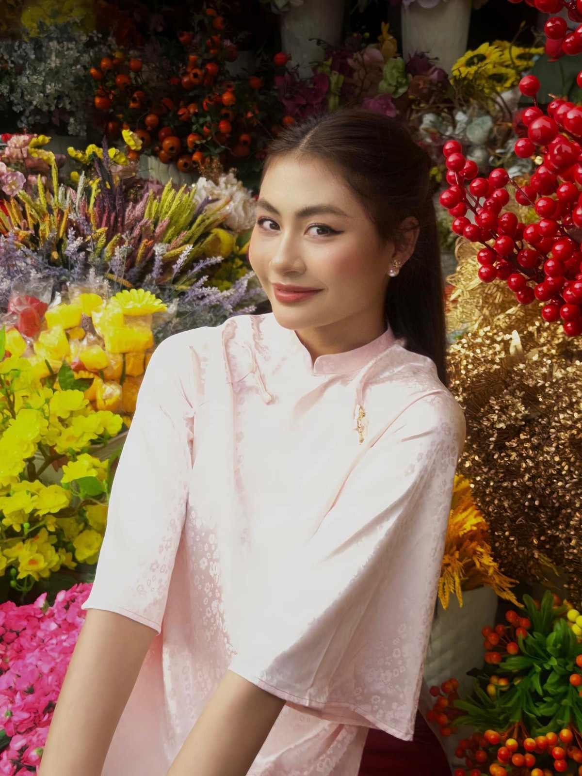 Hoa hậu Bùi Xuân Hạnh cũng chọn áo dài màu hồng để kỷ niệm 1 năm ngày đăng quang. Nàng hậu chọn địa điểm chụp hình mang đậm không khí Tết truyền thống. Chỉ còn chưa đầy 1 tháng nữa cũng sẽ đến Tết Nguyên đán Ất Tỵ.