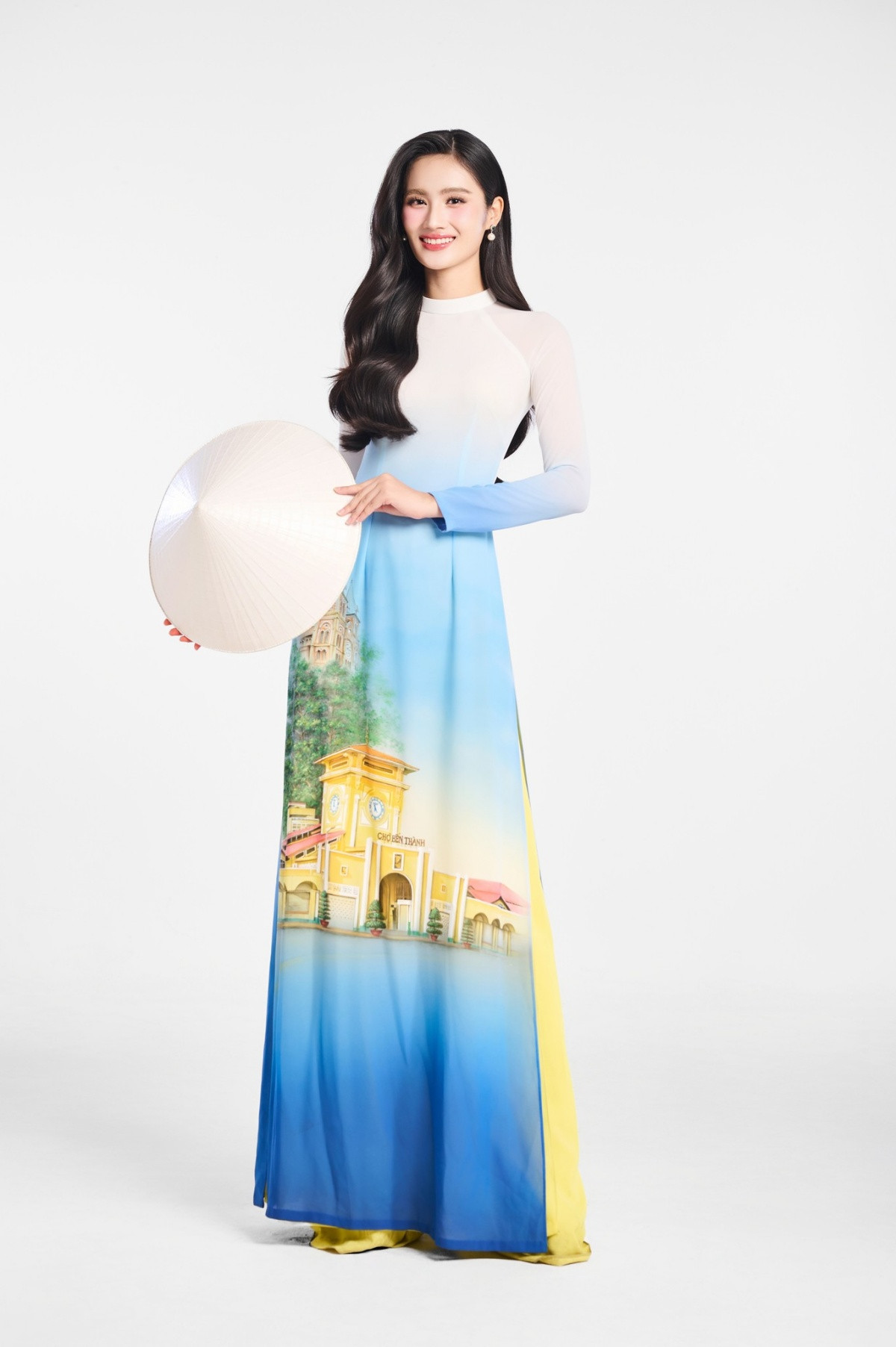 Miss World Vietnam 2023 Huỳnh Trần Ý Nhi tung bộ ảnh áo dài in hình Chợ Bến Thành, với lời giới thiệu bằng tiếng Anh: "We will never forget our past, we will always remember who we are and where we came from..." (tạm dịch: "Chúng ta không bao giờ quên quá khứ, chúng ta luôn ghi nhớ chúng ta là ai và đến từ đâu.”)