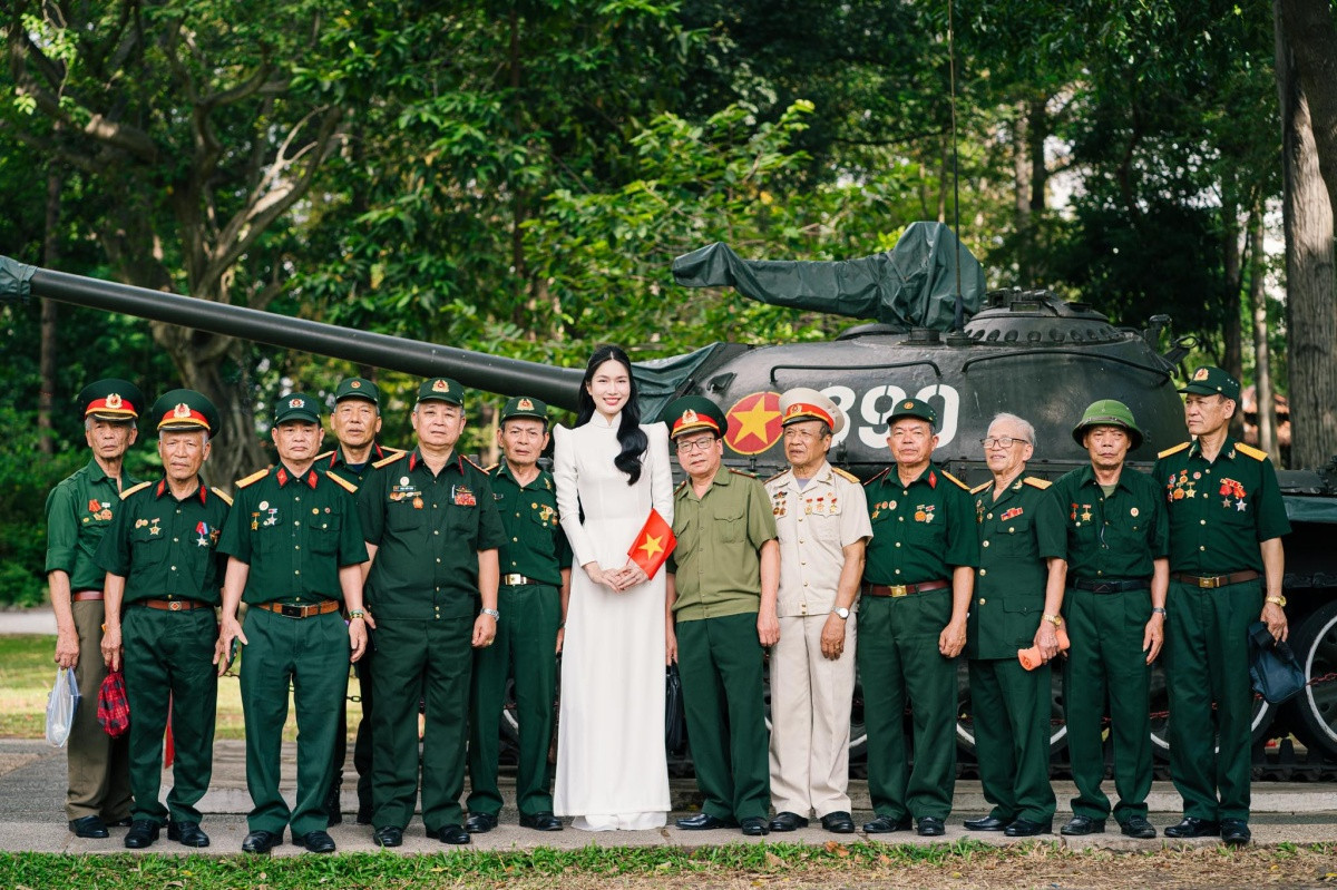 Á hậu Phương Anh có bộ ảnh đáng chú ý, nàng hậu chụp cùng các bác cựu chiến binh...
