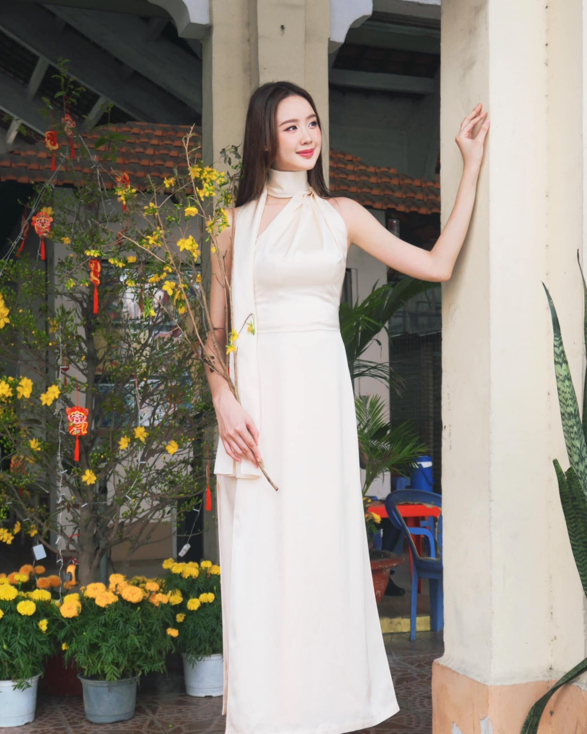 Trước đó trong ngày cuối cùng của năm cũ, nàng hậu khoe bộ ảnh áo dài đẹp như phim cổ trang.