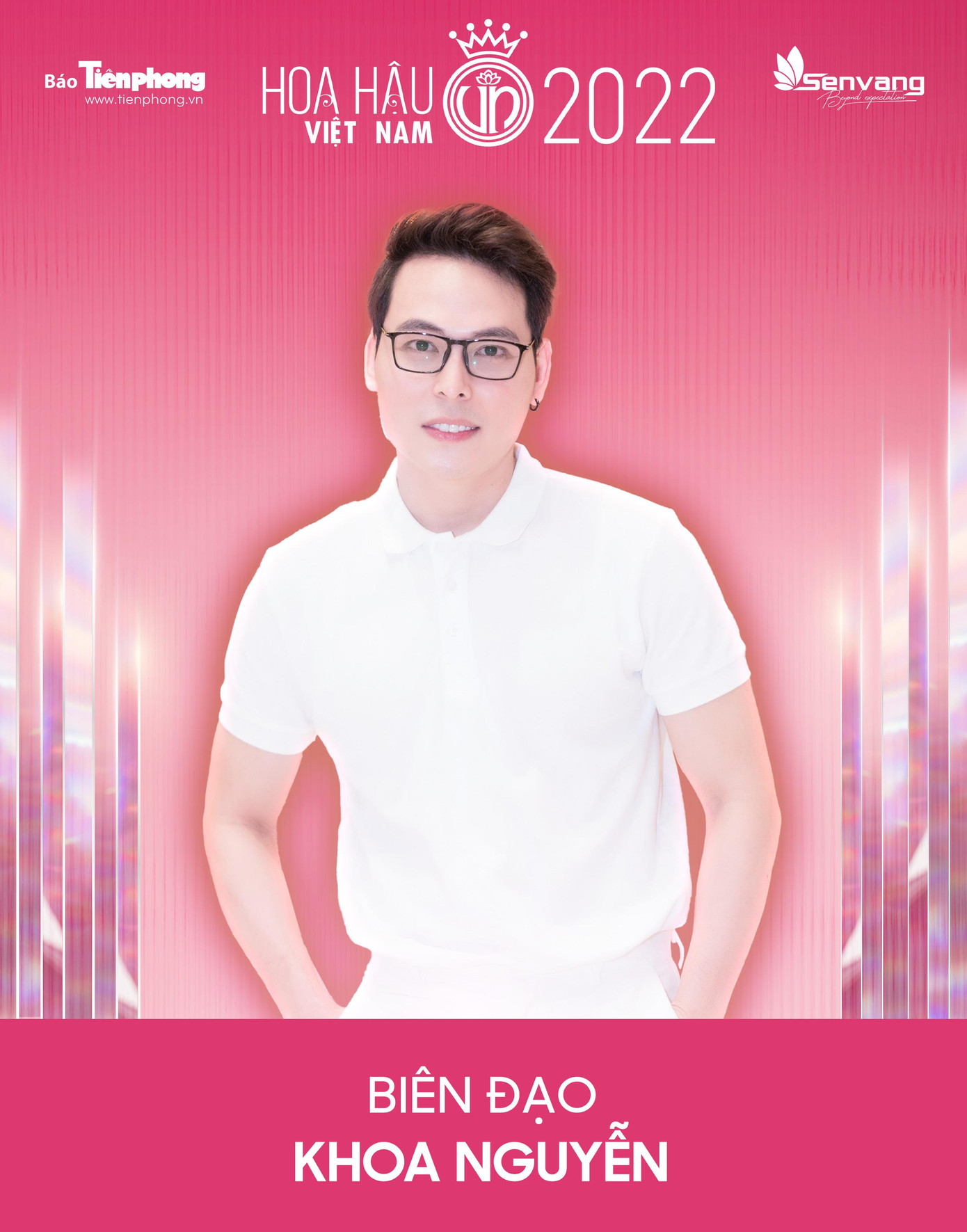 Từng đảm nhận vai trò dàn dựng nhiều tiết mục đặc sắc cho sân khấu Hoa hậu Việt Nam, Khoa Nguyễn hứa hẹn thể hiện phong độ khi nằm trong Ban Nghệ thuật chuyên môn của cuộc thi năm nay.