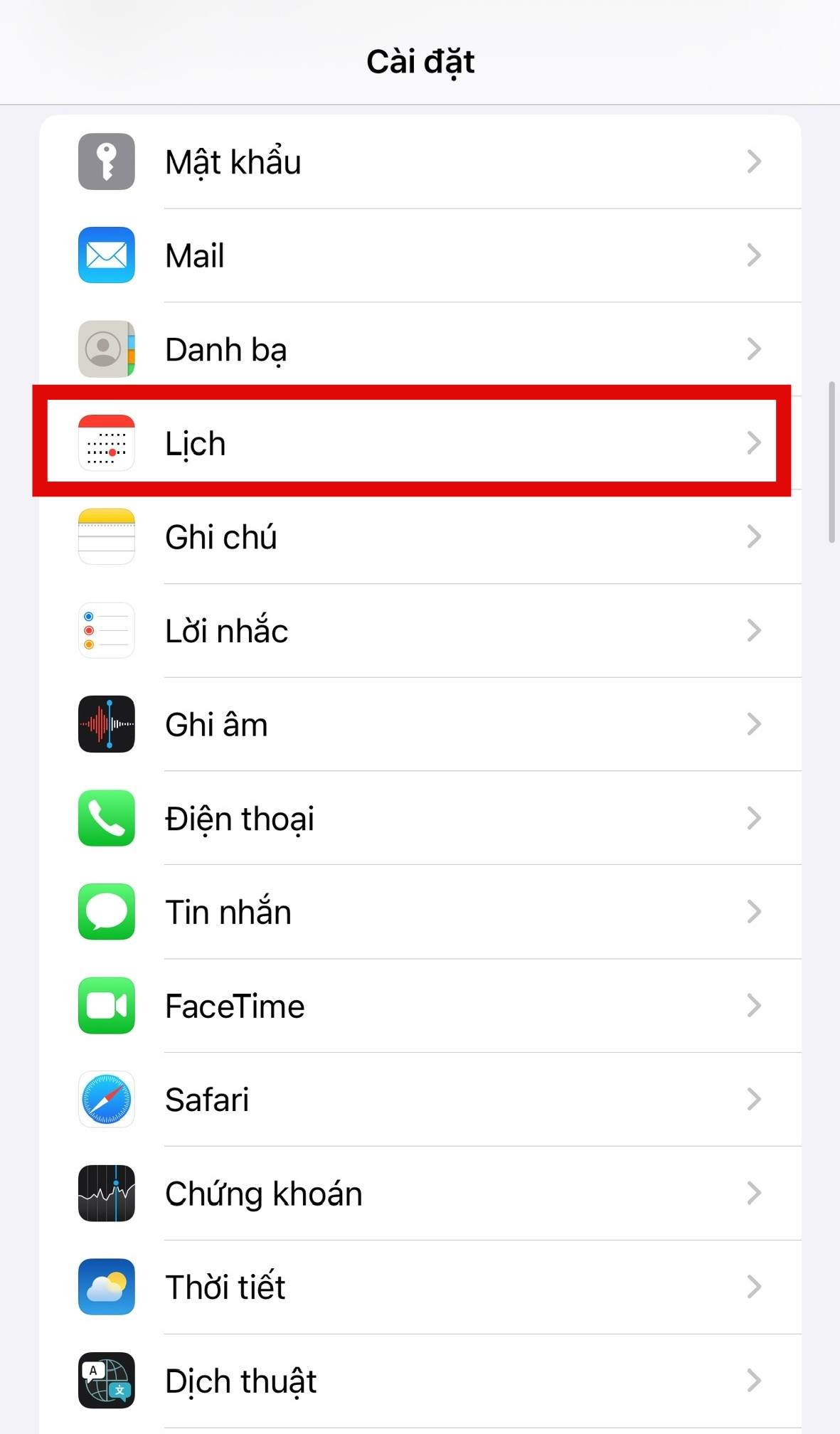 Bước 1: Đến Cài đặt > chọn Lịch.