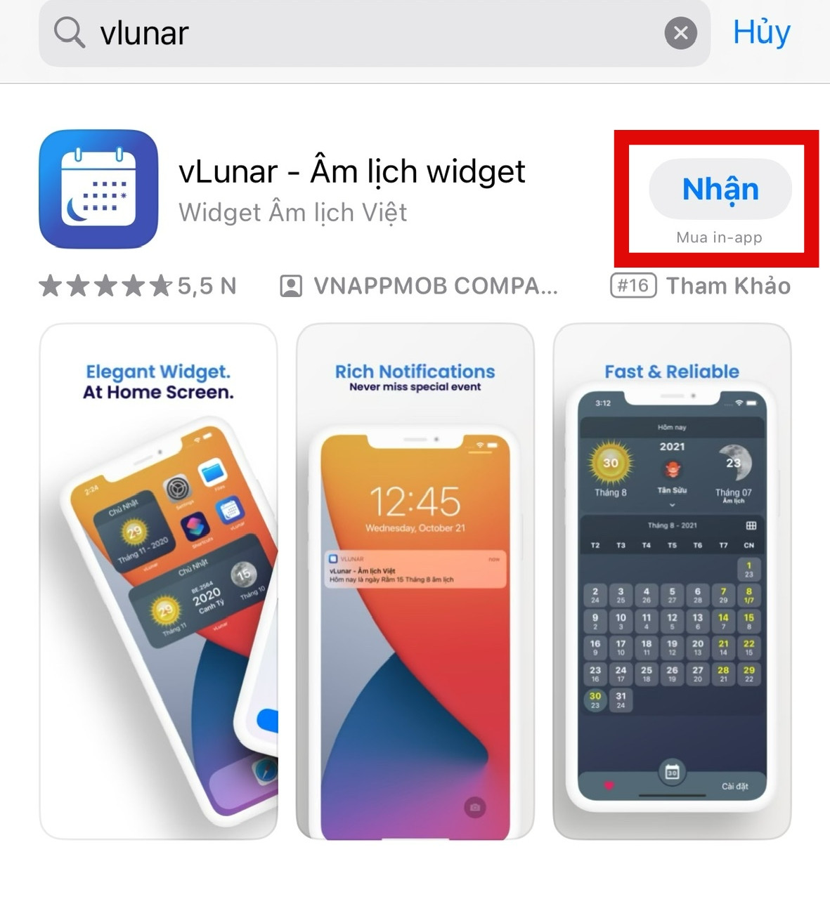 Ngoài ra, người dùng còn có thể thêm lịch Âm vào màn hình chính của iPhone bằng ứng dụng vLunar có ở AppStore. Để làm được điều này, bạn cần thực hiện các bước sau đây: