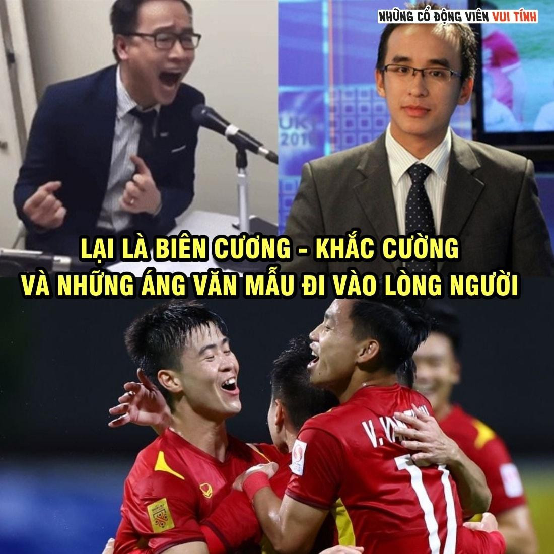 Bên cạnh đó, phần bình luận của BLV Biên Cương và Khắc Cường cũng được dân mạng tổng hợp lại và chia sẻ nhiệt tình: