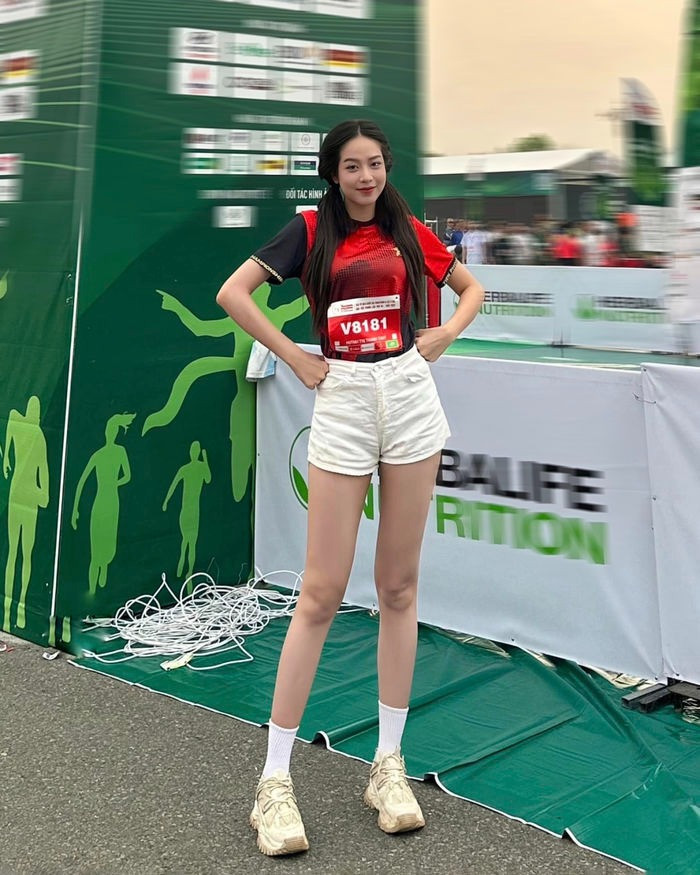 Tuy không phải nàng hậu có đôi chân dài nhất nhưng Đỗ Thị Hà lại có lợi thế ở chỗ chân rất dài và thẳng. Ngay cả khi đi giày thể thao như thế này, cô vẫn gây ấn tượng với đôi chân dài miên man, thẳng băng.